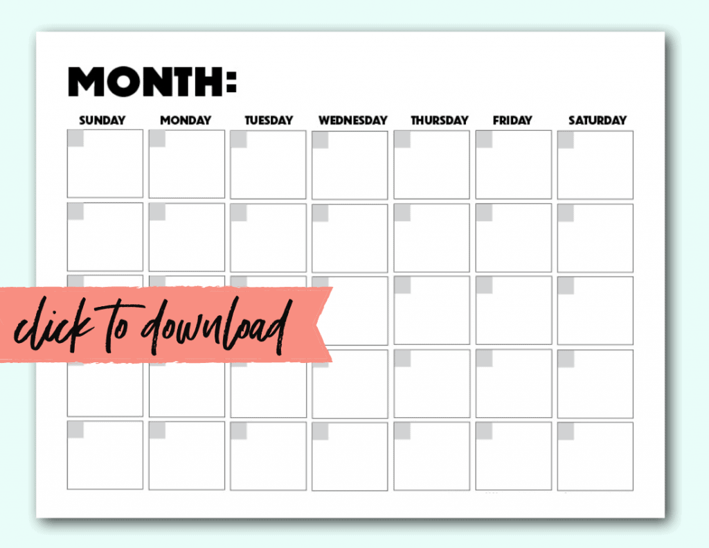 Blank Calendar Templates 29 Cute Free Printables SaturdayGift