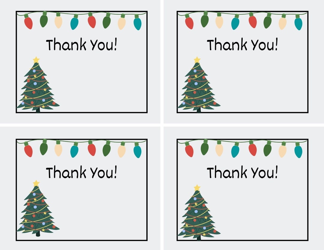 Printable Christmas Thank You Cards For Teachers Students Or Anyone 4 Cards Per Page Digital Download NOW Includes Editable Template Etsy