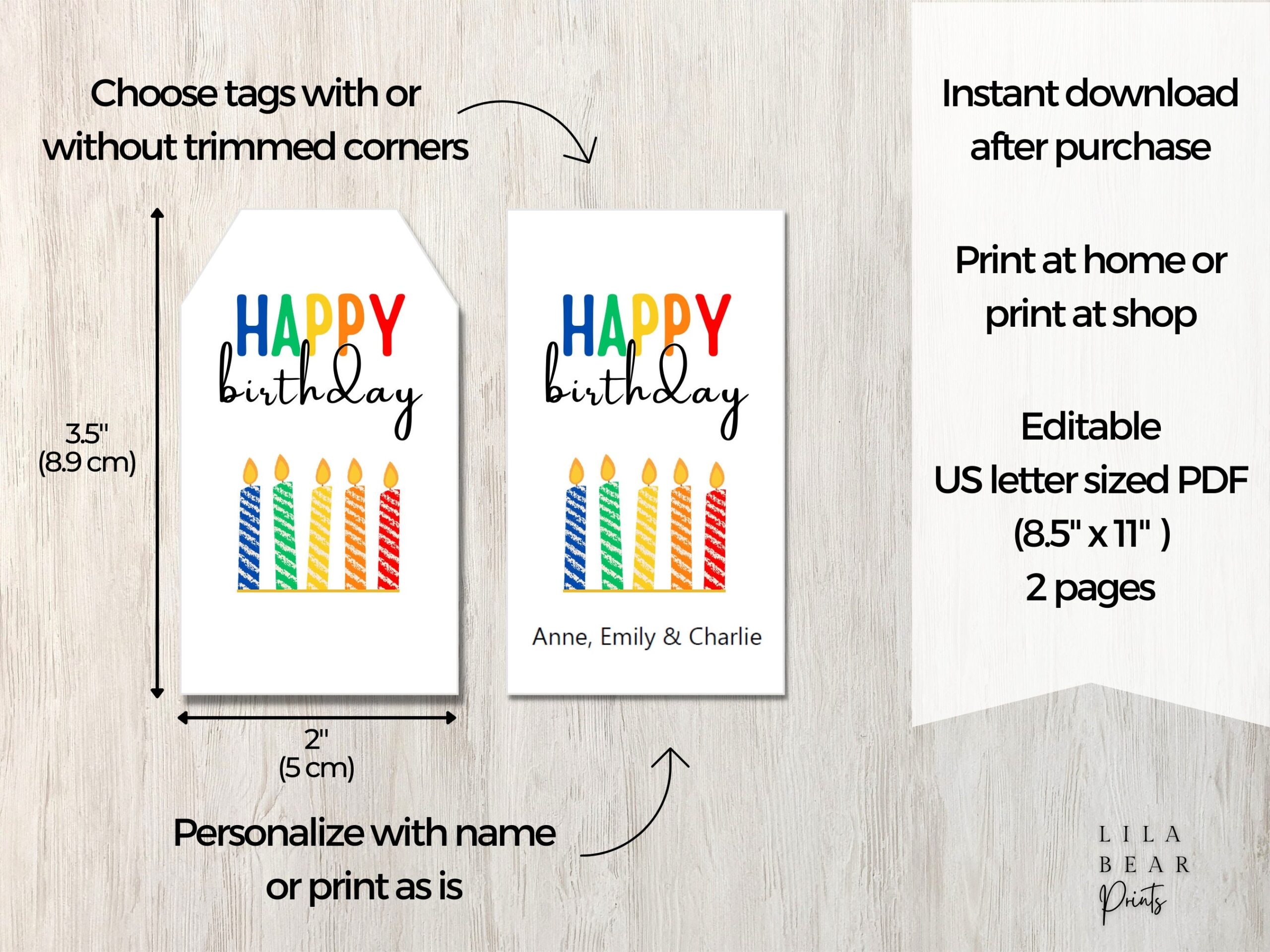 Printable Birthday Tags Happy Birthday Gift Tag Instant Download Editable Printable Etsy