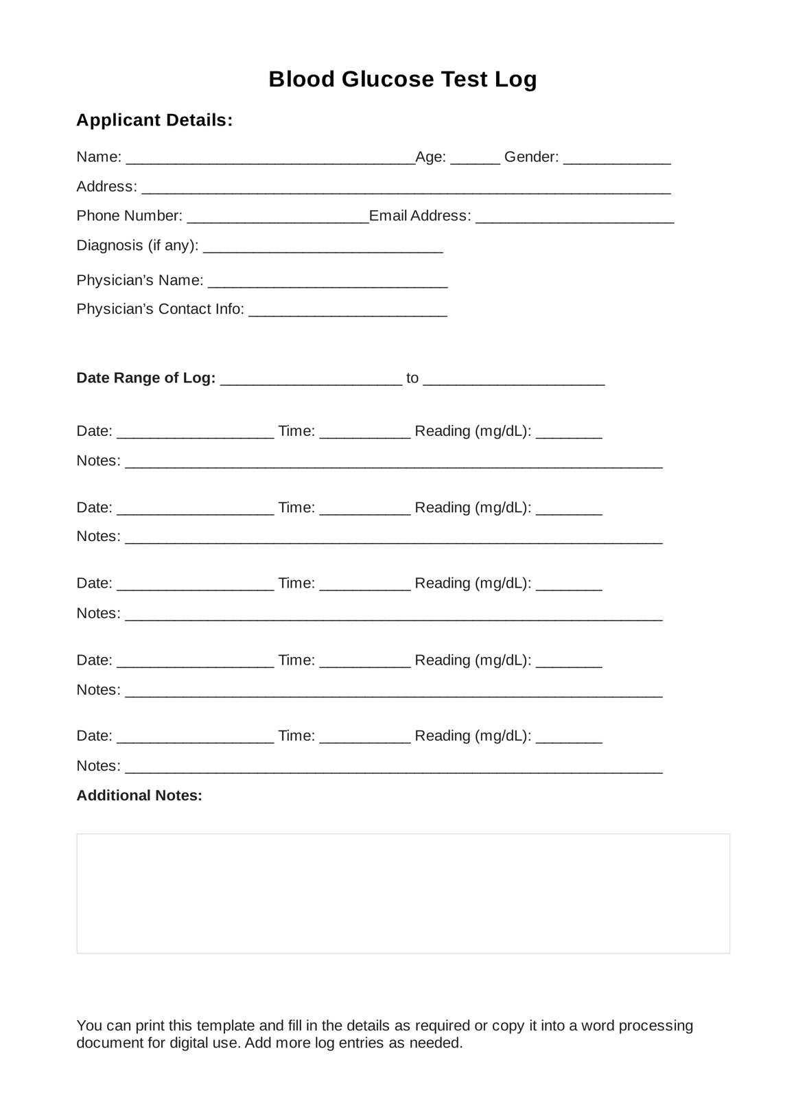 By tracking your glucose levels regularly, you can identify patterns, make necessary lifestyle changes, and better manage your condition. Our editable form makes it easy to see trends over time, empowering you to take control of your health.