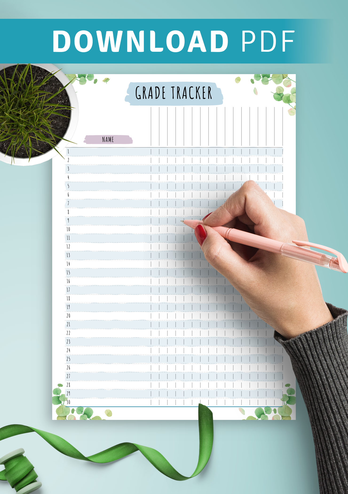 Download Printable Gradebook Template Floral Style PDF