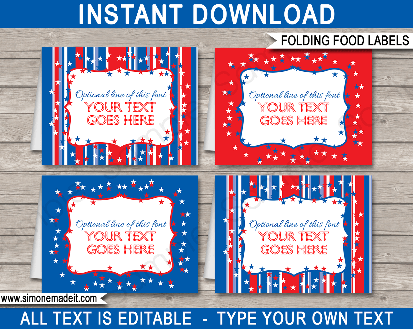 Editable 4th July Party Food Labels Place Cards 4th July Theme