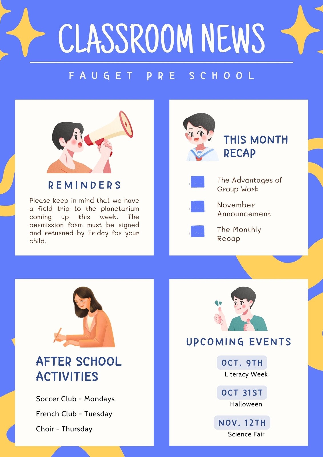 Don’t settle for boring newsletters that get lost in parents’ inboxes. With our free printable editable newsletter templates, you can create eye-catching newsletters that parents will actually read. Keep them informed and engaged with all the exciting things happening in your classroom!