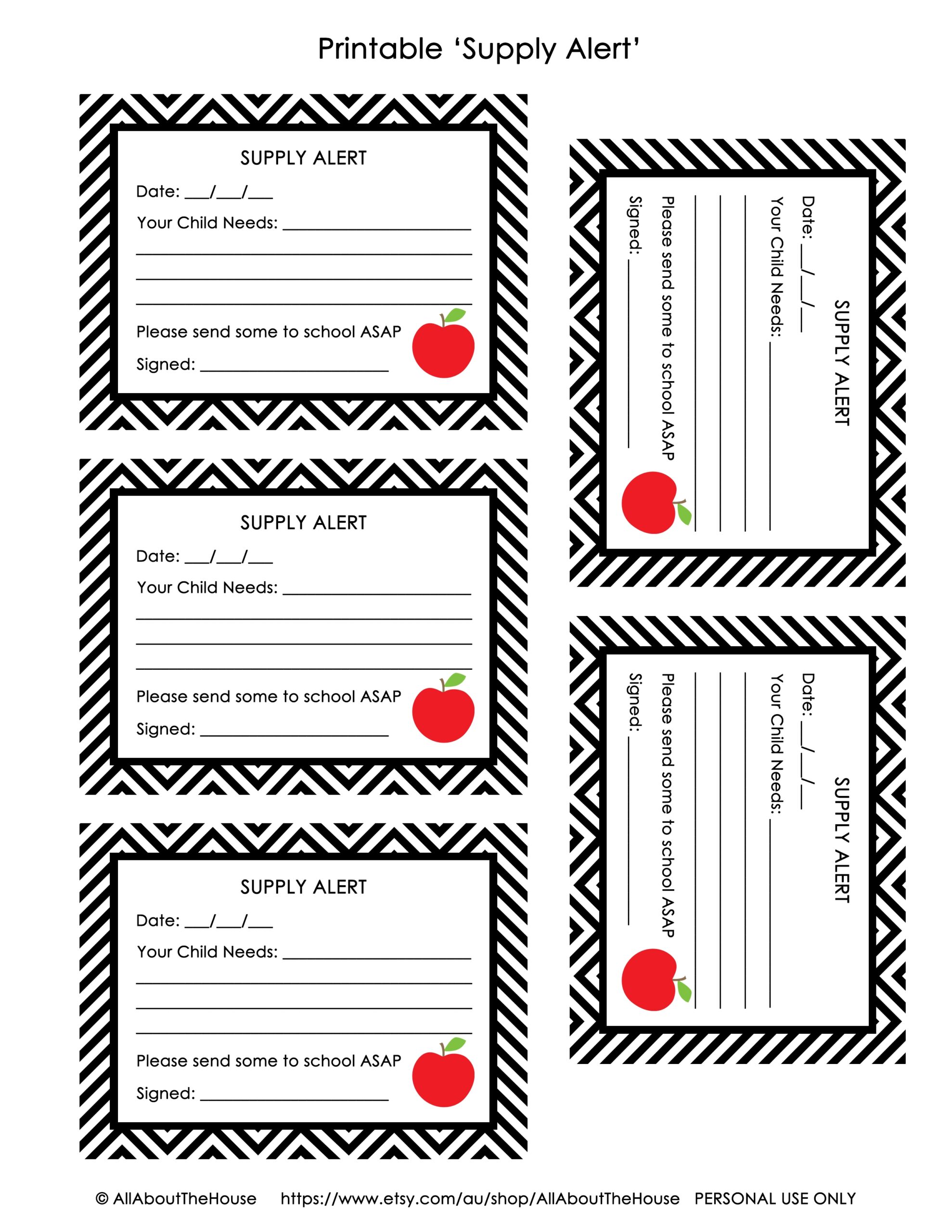 FREE Printable Hall Pass And Supply Alert Cards All About Planners