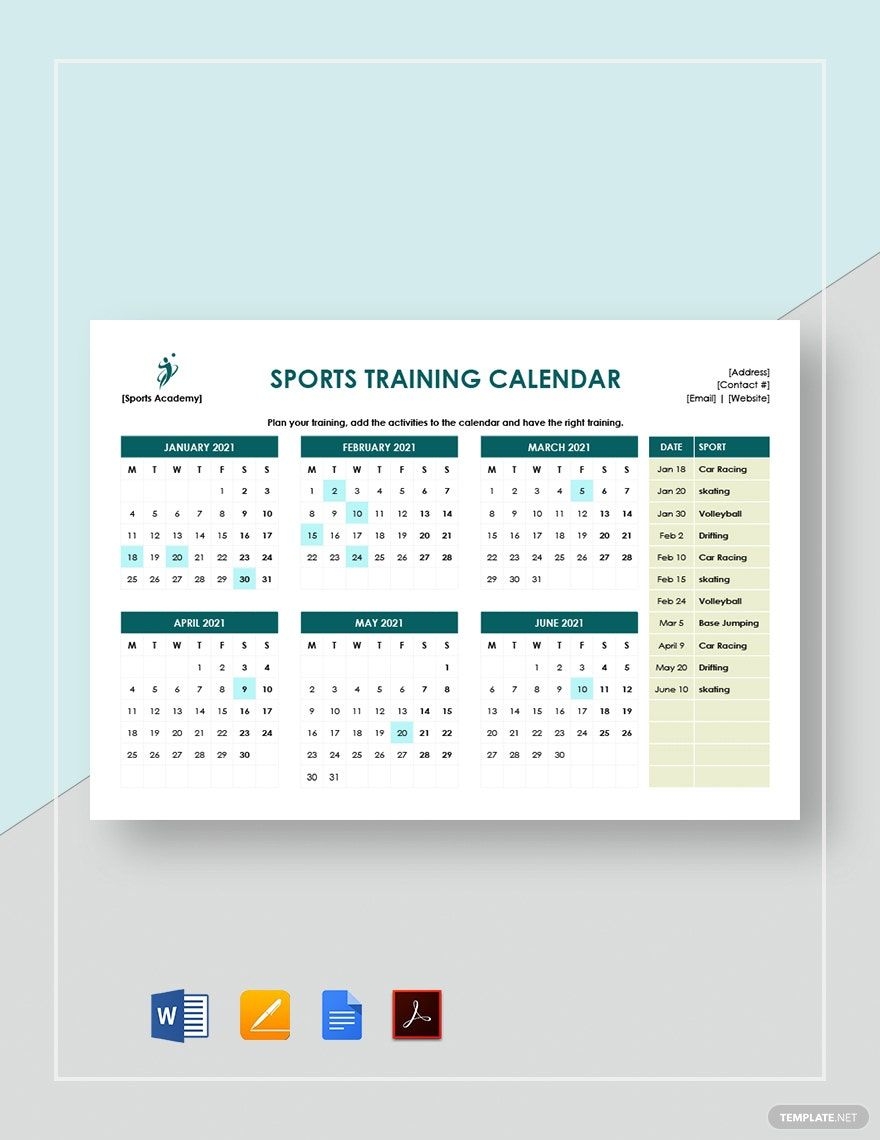Sports Training Calendar Template In Google Docs Pages Word PDF Download Template