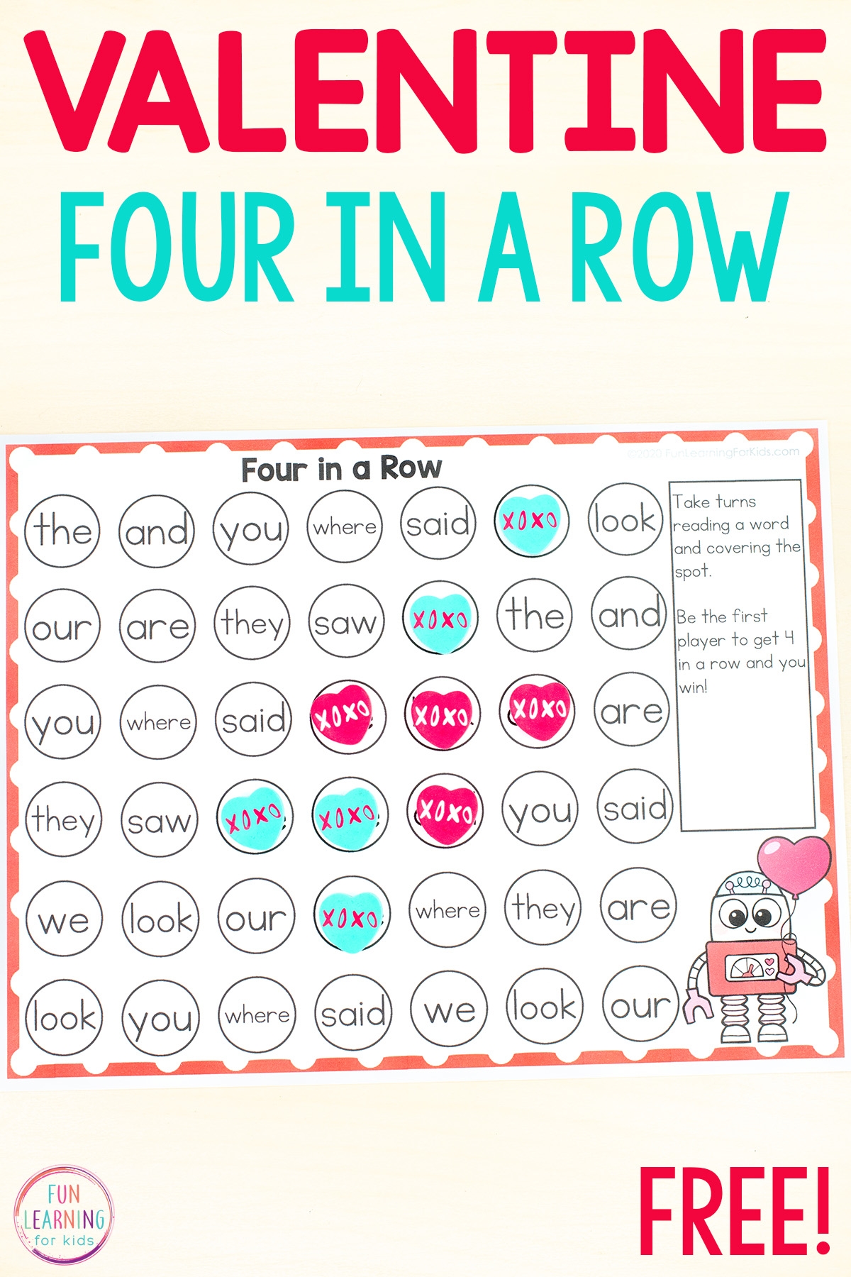 Editable Valentine s Day Four In A Row Printable Literacy Game