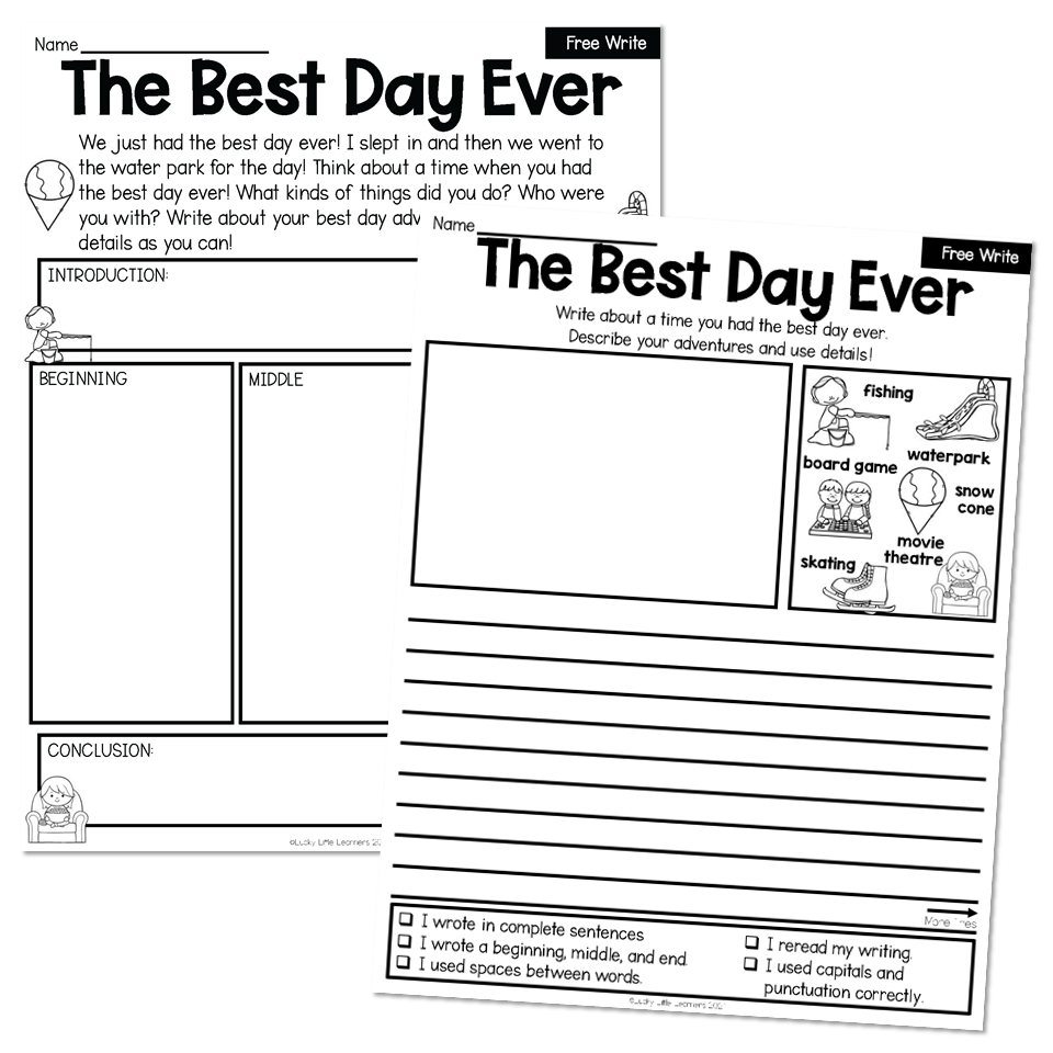 2nd Grade August Writing Pages Free Write The Best Day Ever Lucky Little Learners