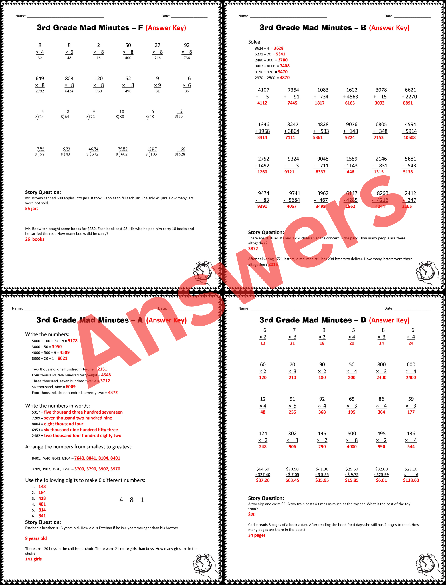 3rd Grade Math Review Multiplication Division Word Problems Mad Minute Made By Teachers