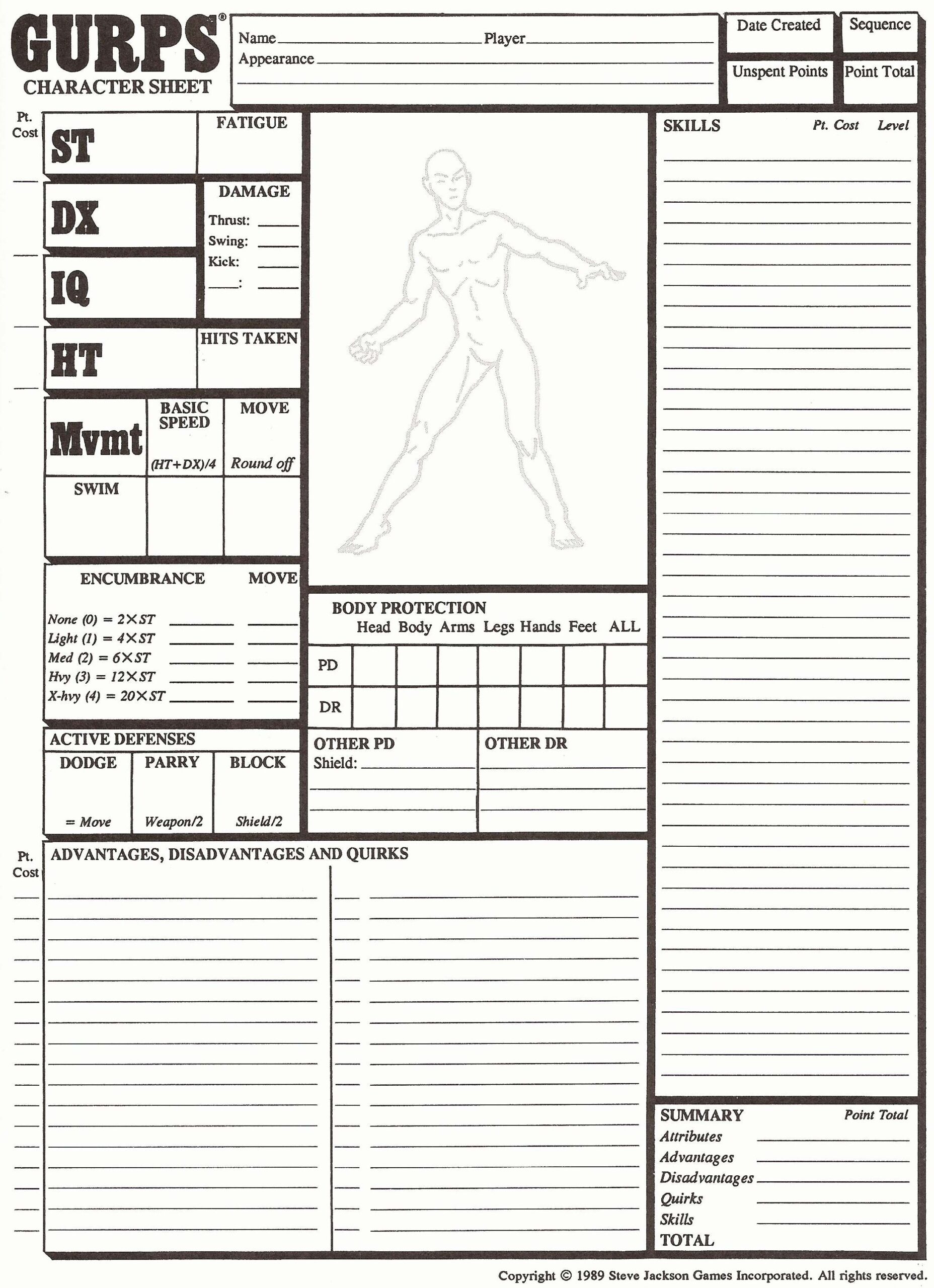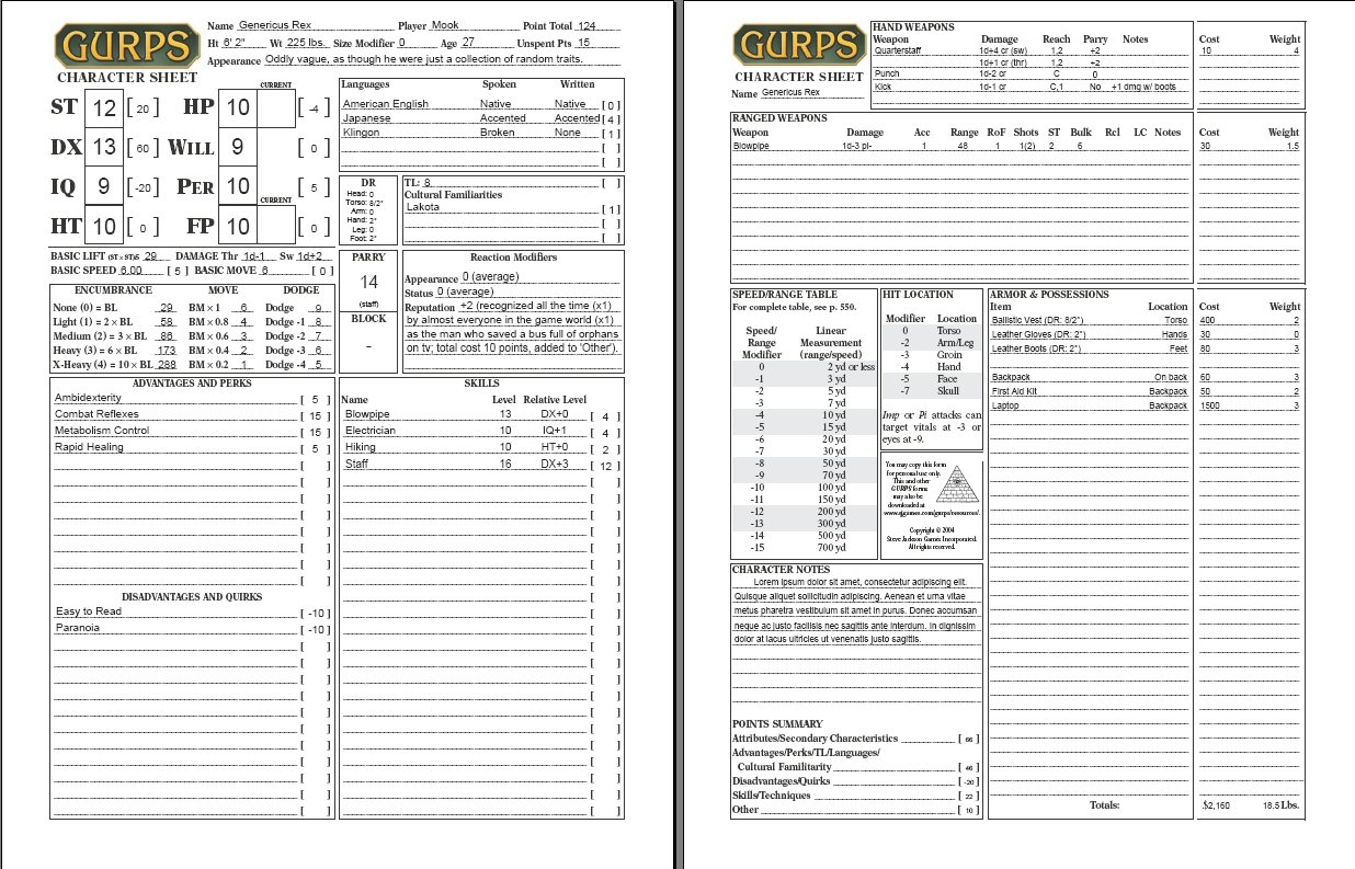 Two New Character Sheets For GURPS Game Geekery Mobile Version