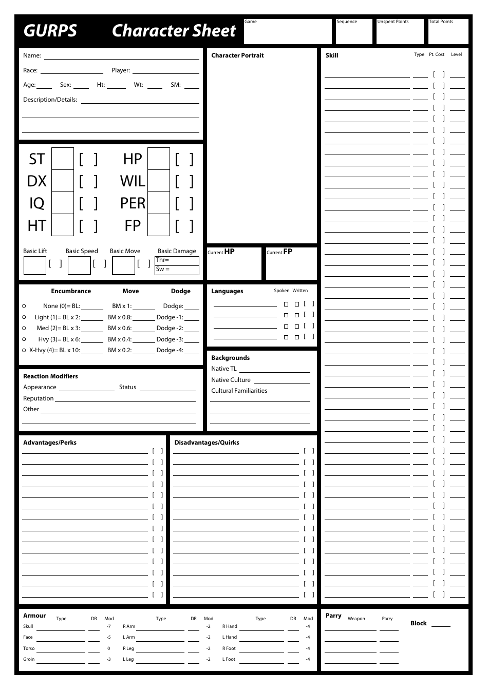 Creating a character in GURPS can be a detailed process, but having a printable character sheet can make it much easier to manage all the information. With our printable sheet, you can fill in your character’s name, attributes, skills, and equipment with ease, making it simple to reference during gameplay.