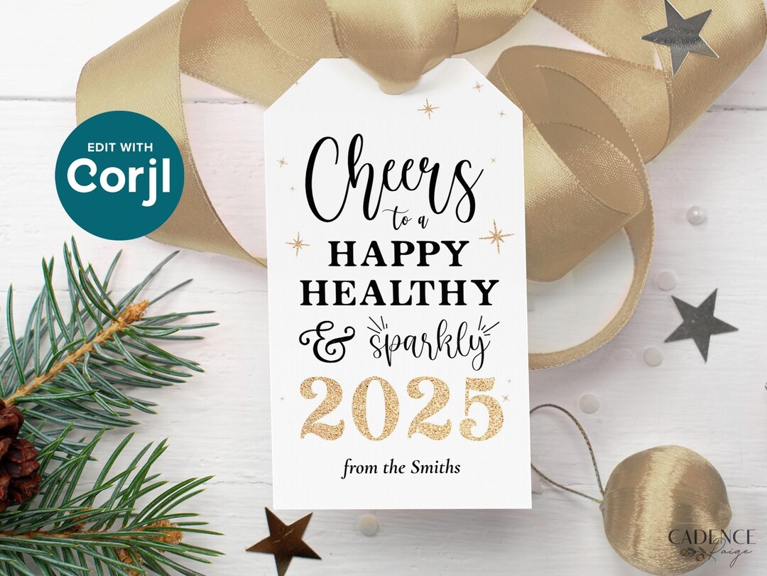 Happy New Year Gift Tag Printable New Years Tag Editable New Years Eve Tag For Sparkling Bottle Customizable 2025 NYE Tag DIY EDITABLE Etsy