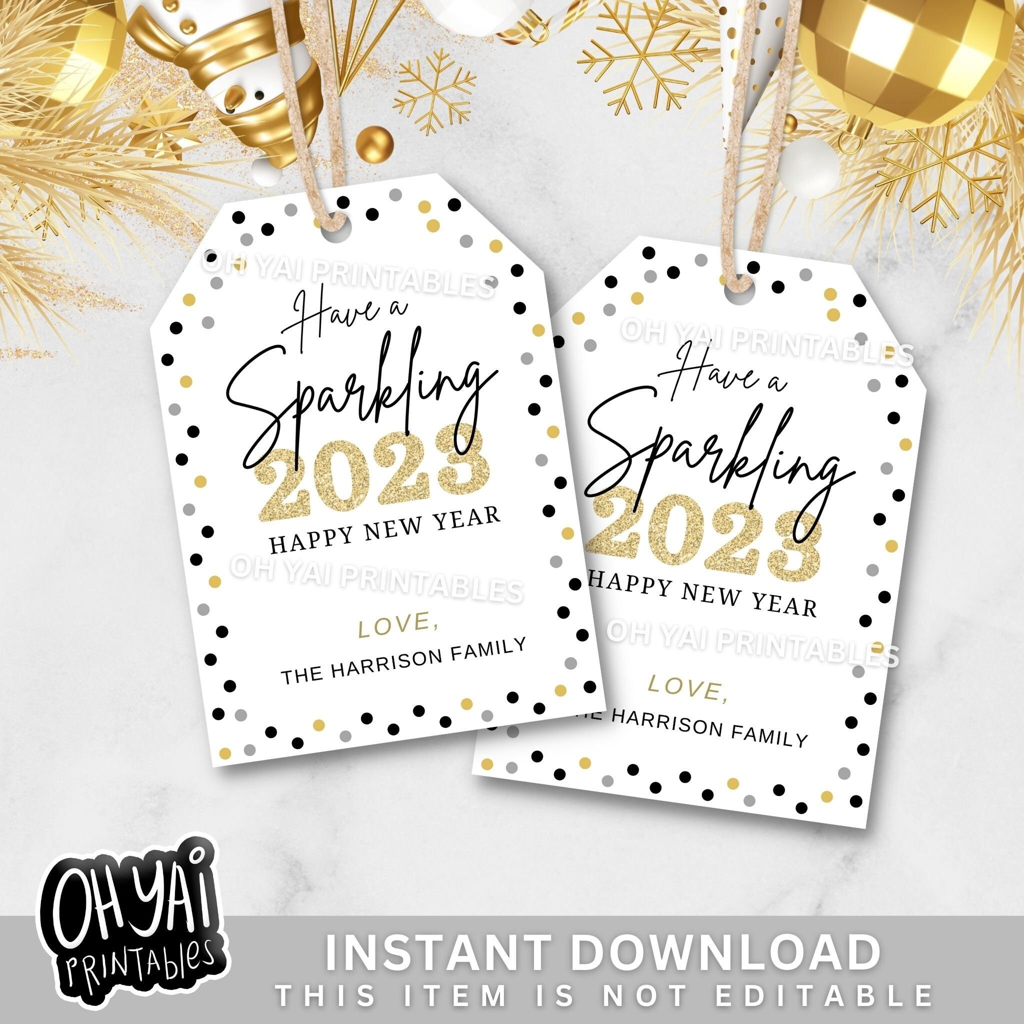 Happy New Year Editable Printable Tags