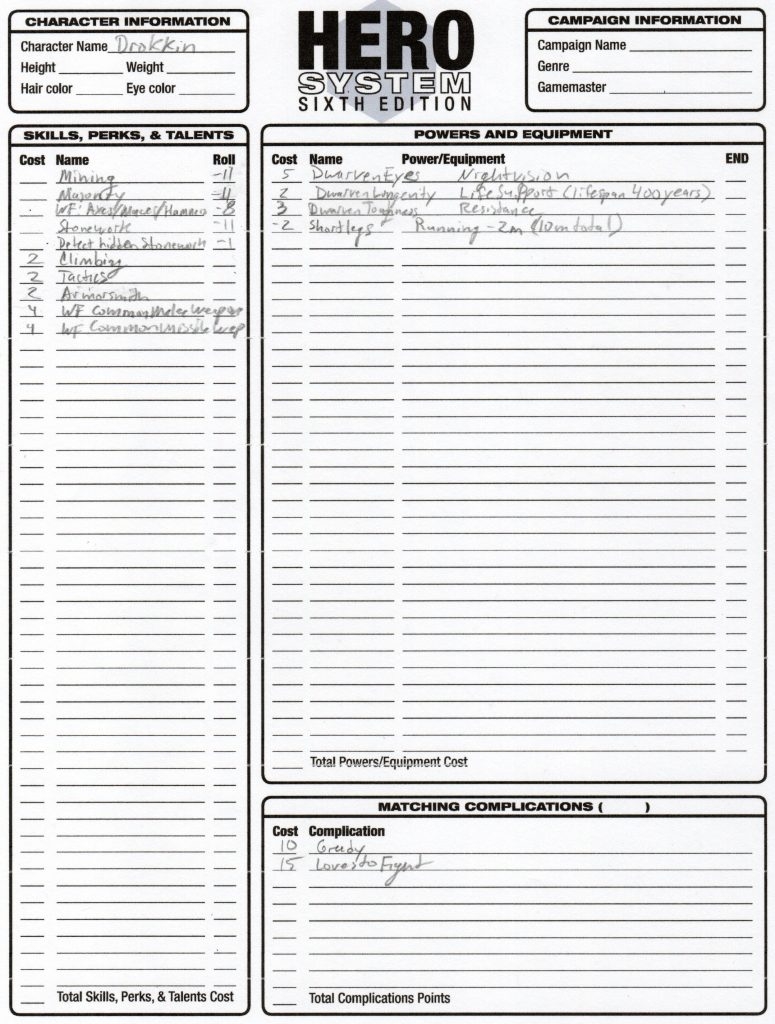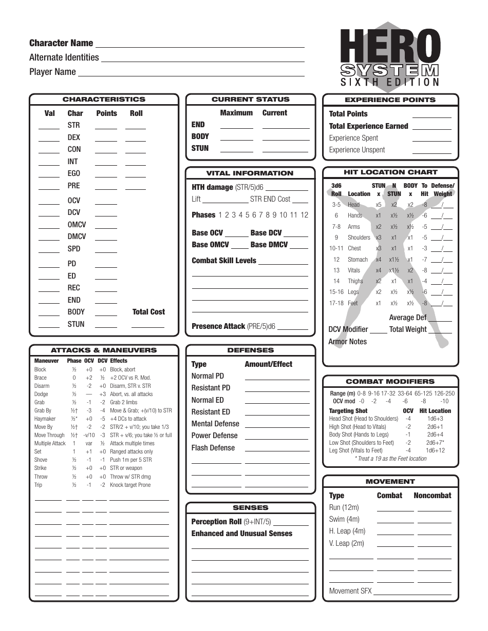 Hero System Sixth Edition Character Sheet Download Printable PDF Templateroller