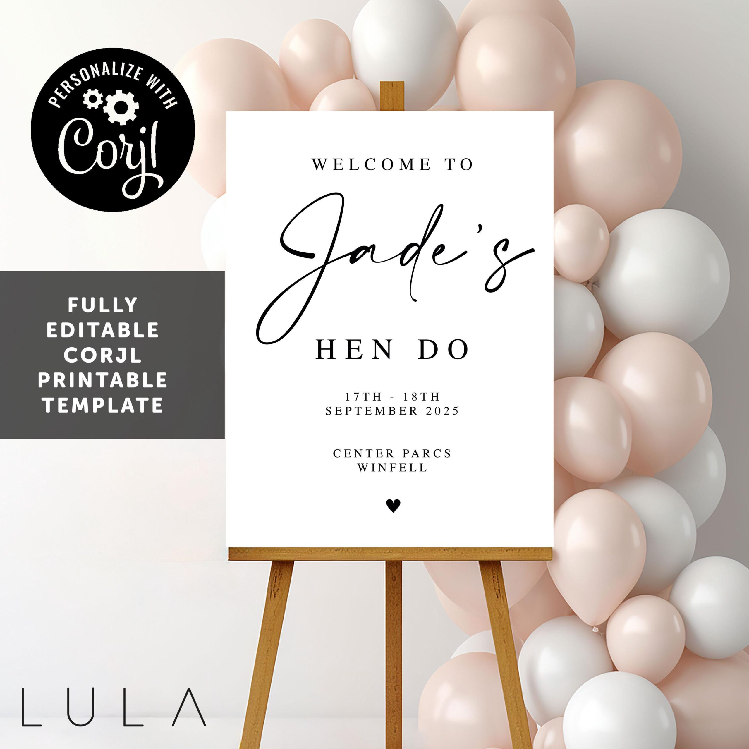 INSTANT Download Printable Hen Do PRINTED Welcome Sign DIGITAL Download Elegant Hen Do Welcome Sign Hen Do Signage Decor Corjl Sign Template