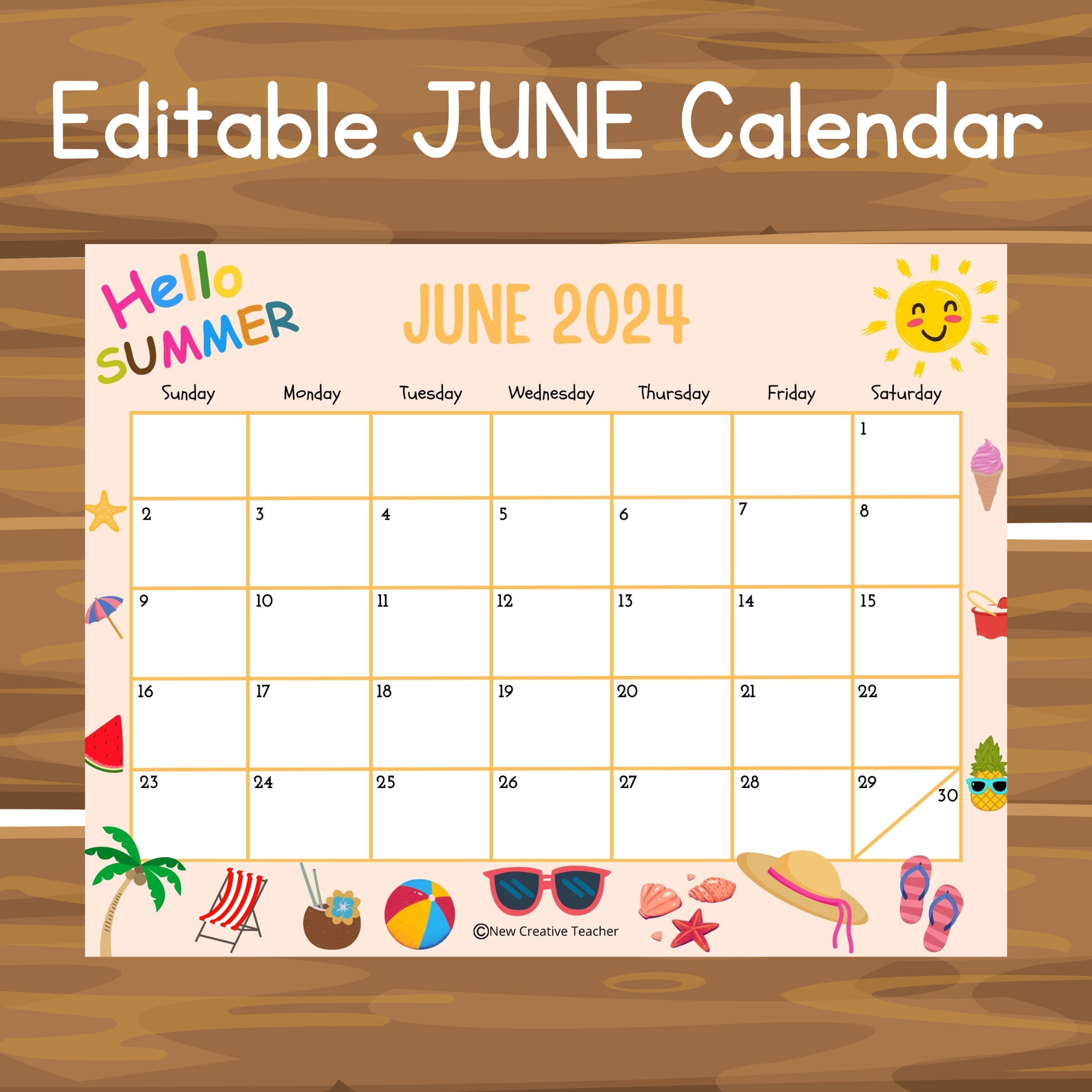 Editable JUNE 2024 Calendar SUMMER Made By Teachers