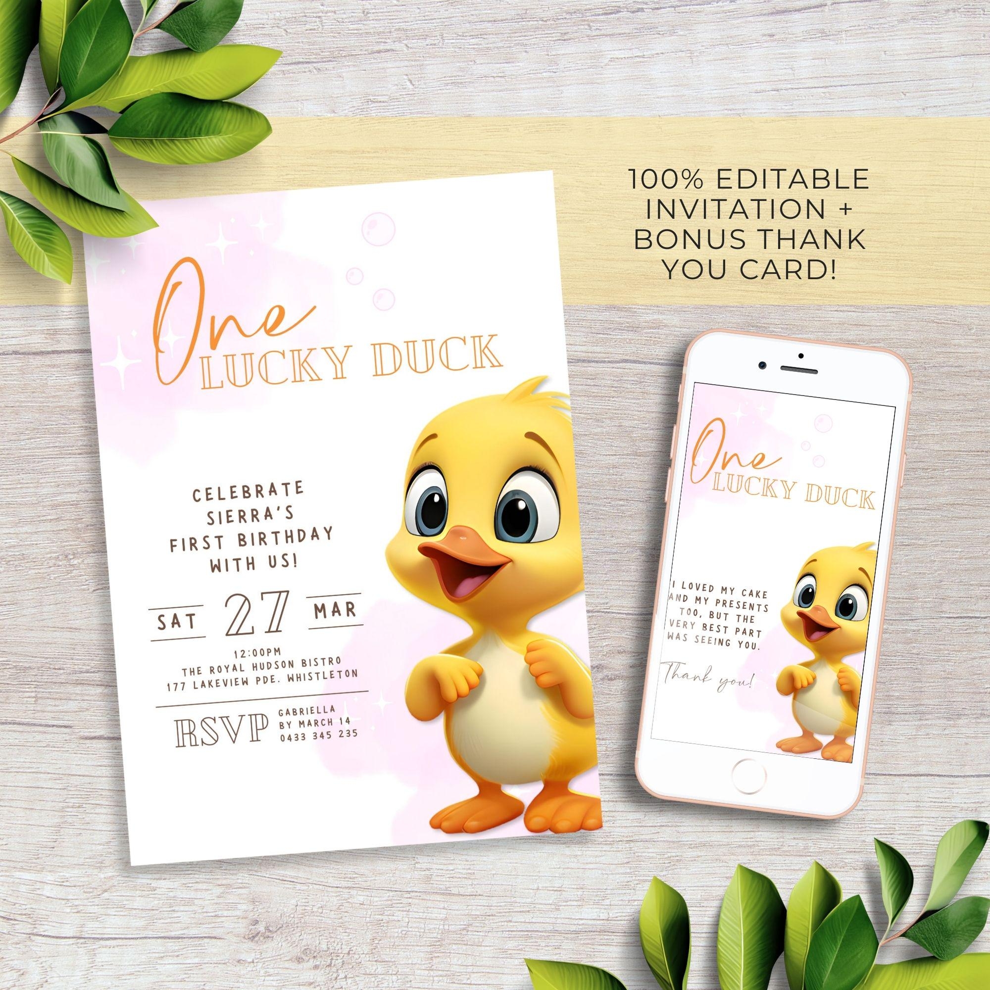 Girl First Birthday Invitation One Lucky Duck Invitation Cute Pink Invite Mallard Duck Invite Gender Neutral 1st Birthday Party Etsy