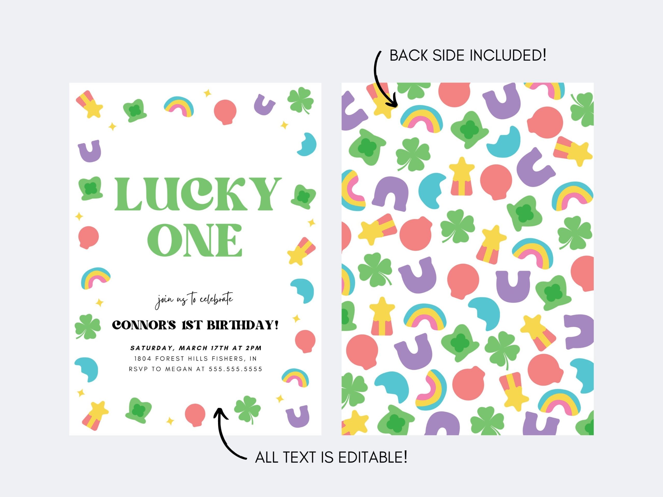 Lucky One Birthday Invitation Lucky Charms Invite St Patricks Day Birthday Shamrock First Birthday Party Editable Instant Download Etsy