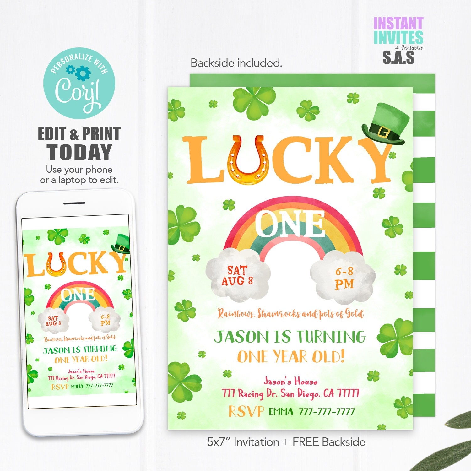 Lucky One Birthday Invitation St Patricks Day Birthday Invite Shamrock First Birthday Party Lucky Charm Editable Instant Download Etsy