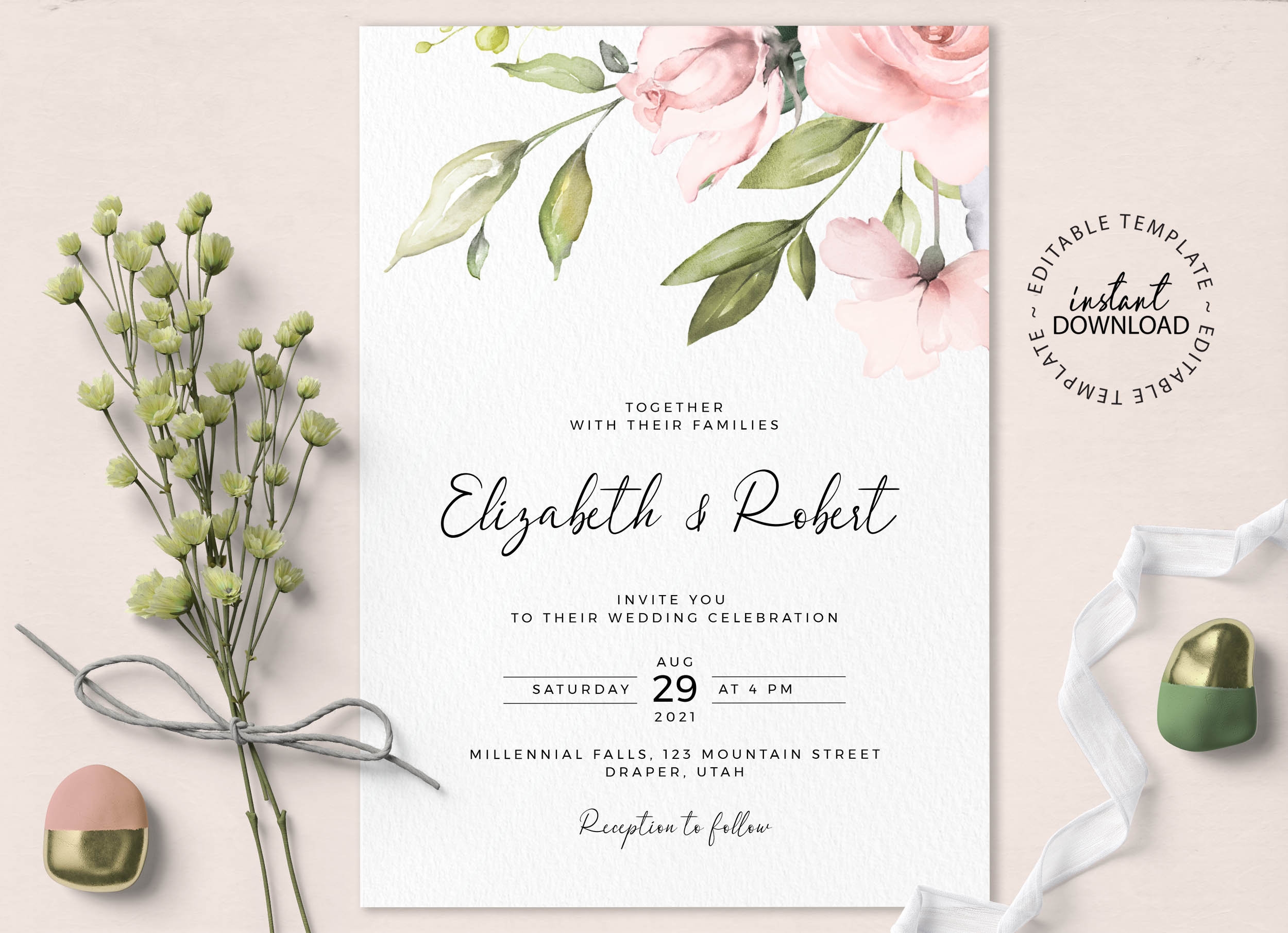 Pink Blush Mauve Editable Wedding Invitation mauve Blush Roses Editable Invitation mauve Flowers wedding Bridal Shower Bridal Invite C 061 Etsy