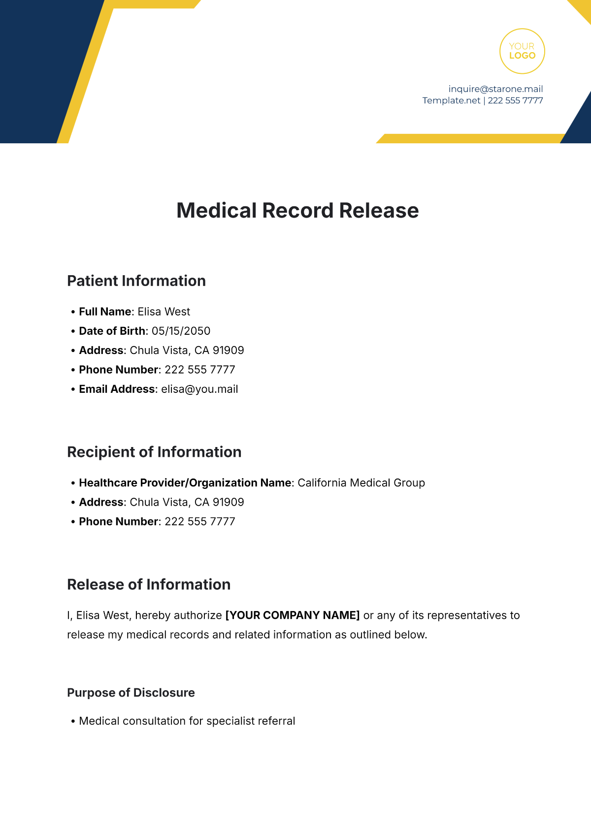 Whether you are a caregiver, a parent, or simply need to authorize medical treatment for yourself, having a free editable medical release form can save you time and hassle in critical situations.