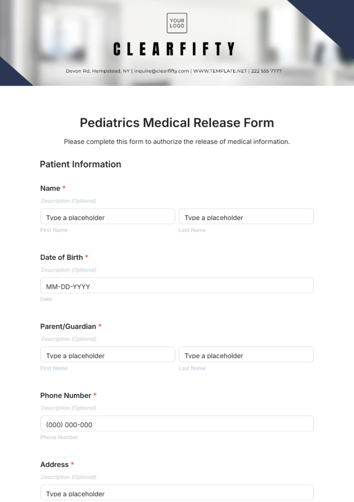 Free Pediatrics Medical Release Form Template To Edit Online