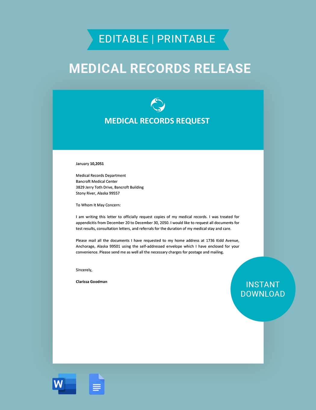 Medical Release Printable Free Editable