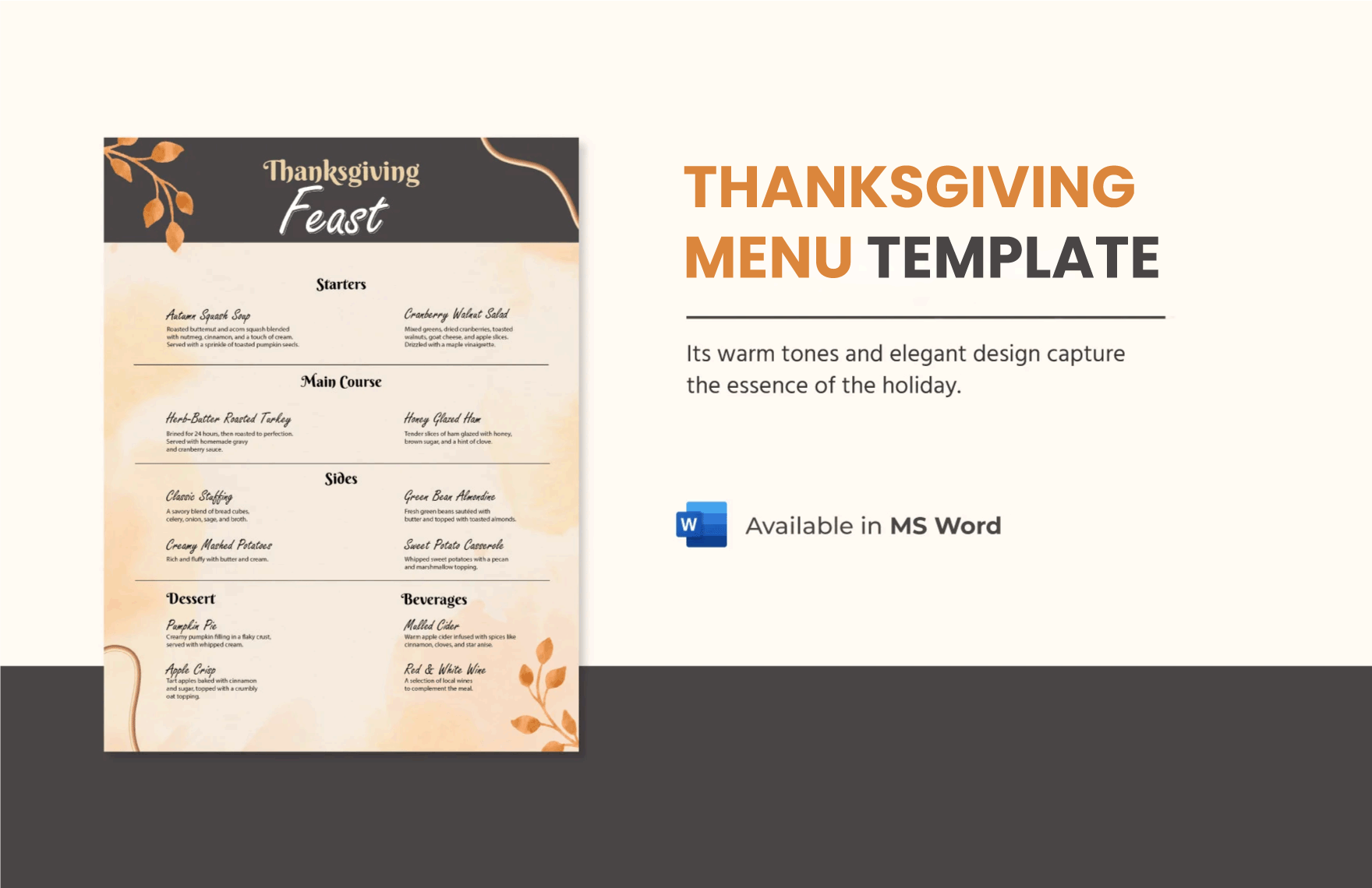Microsoft Thanksgiving Editable And Printable Menus Template