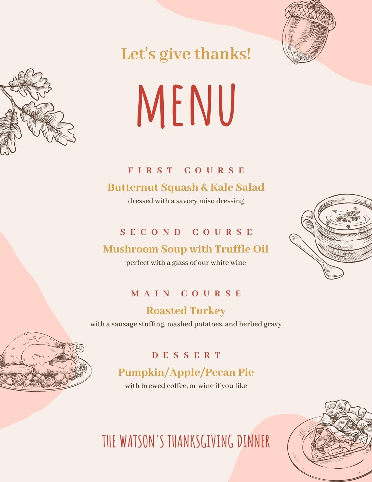 Free Printable Customizable Thanksgiving Menu Templates Canva