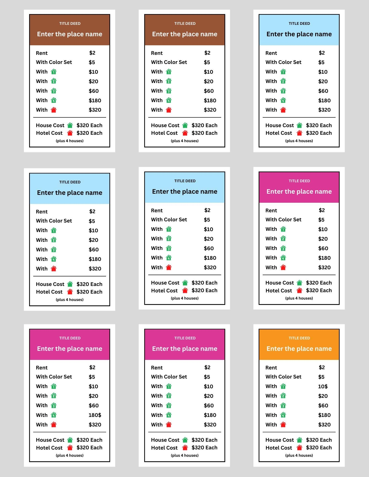 Once you’ve downloaded the cards, print them out on cardstock or regular paper and cut them to size. You can then shuffle them into the existing property card deck or create a separate deck for added challenge. The possibilities are endless, so get creative and have fun with it!
