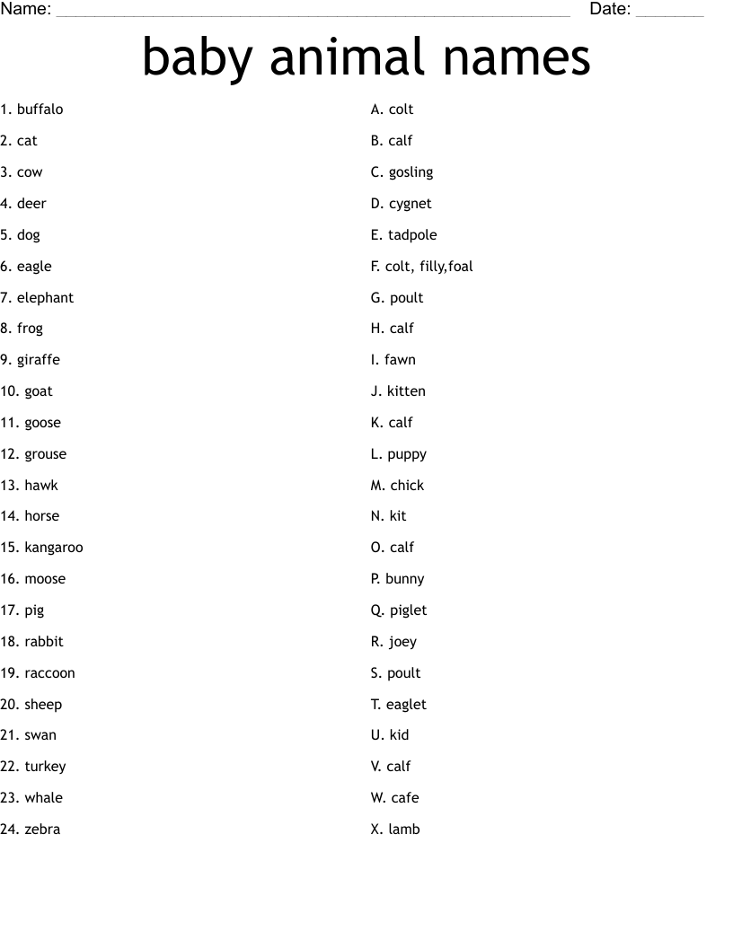 Baby Animal Names Worksheet WordMint