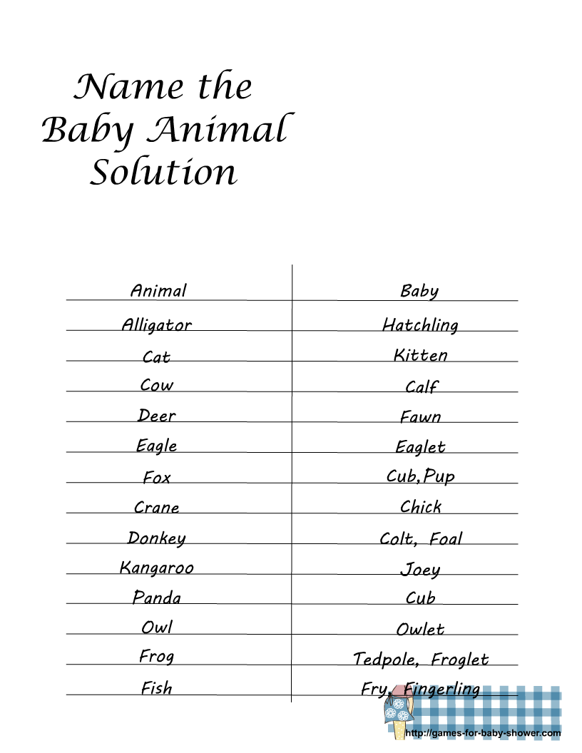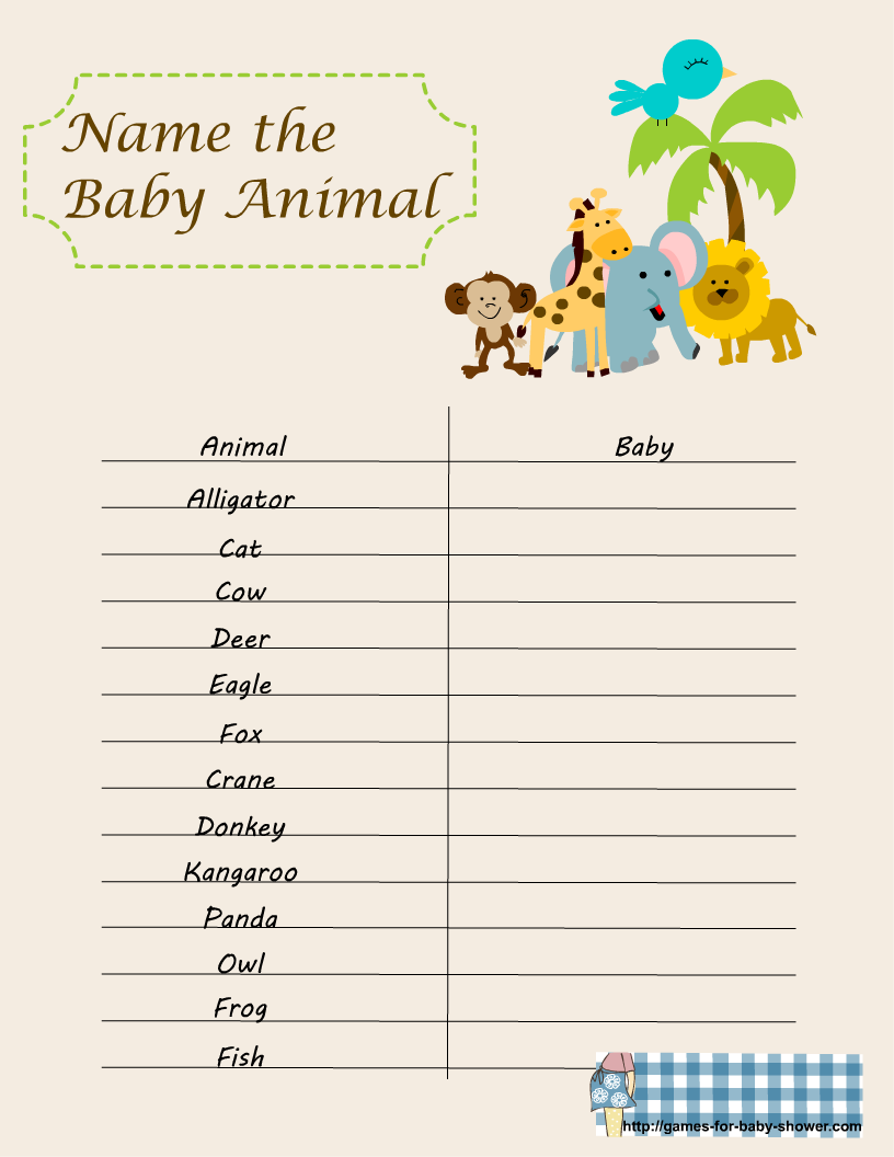 Free Printable Name The Baby Animal Game For Baby Shower