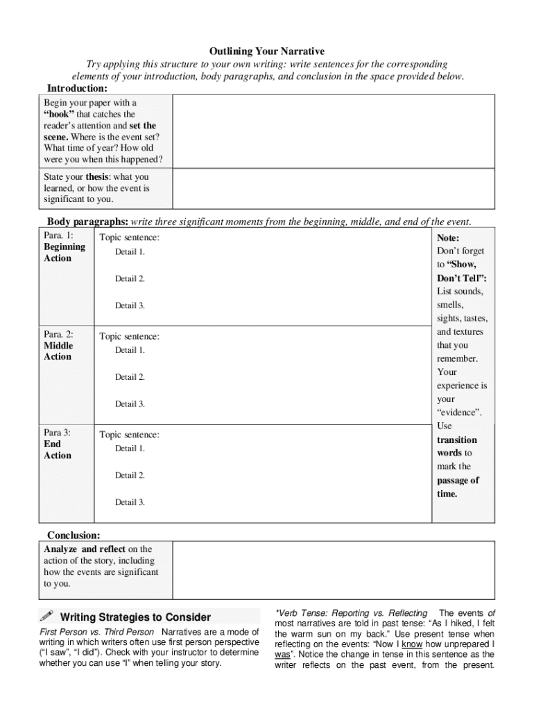 Personal Narrative Template Pdf Fill Online Printable Fillable Blank PdfFiller