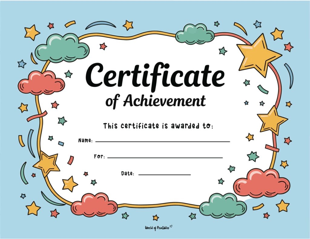 Free Printable Certificate Of Achievement Templates For Kids World Of Printables