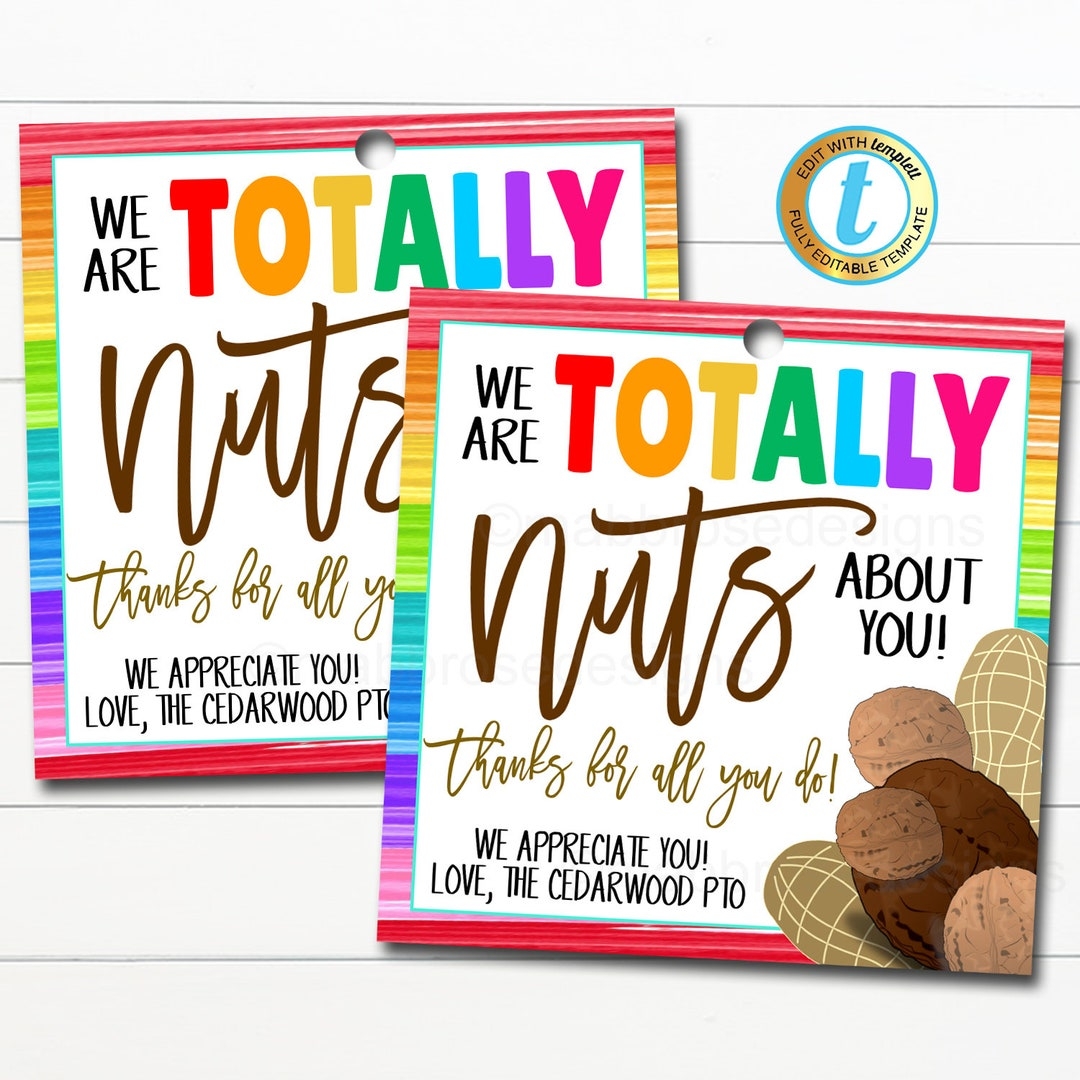 Nuts Gift Tag Thank You Label Editable Totally Nuts About You Teacher Employee Staff Nurse Appreciation Gift School PTO PTA Treat Tag Etsy