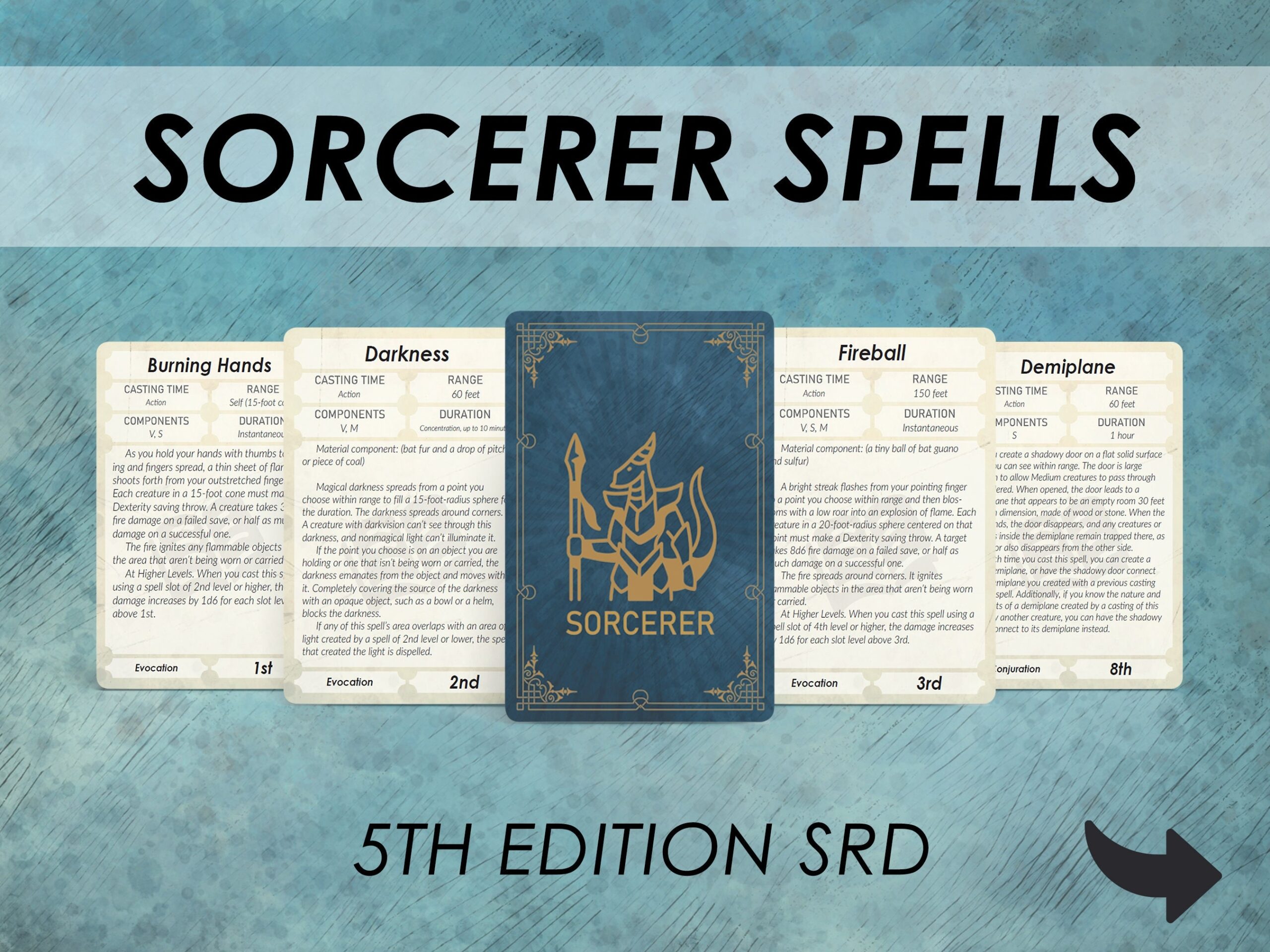 Pathfinder 2nd Edition Sorcerer Printable Spell Cards