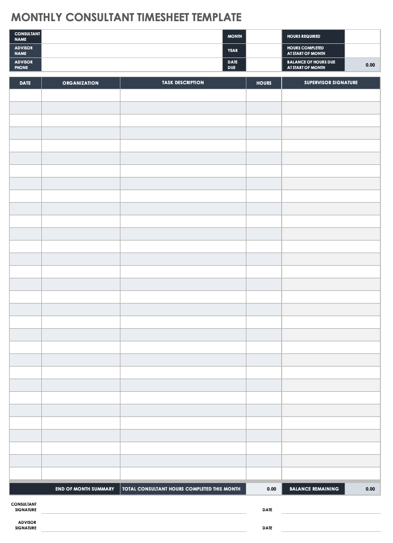 Free Monthly Timesheet Time Card Templates Smartsheet