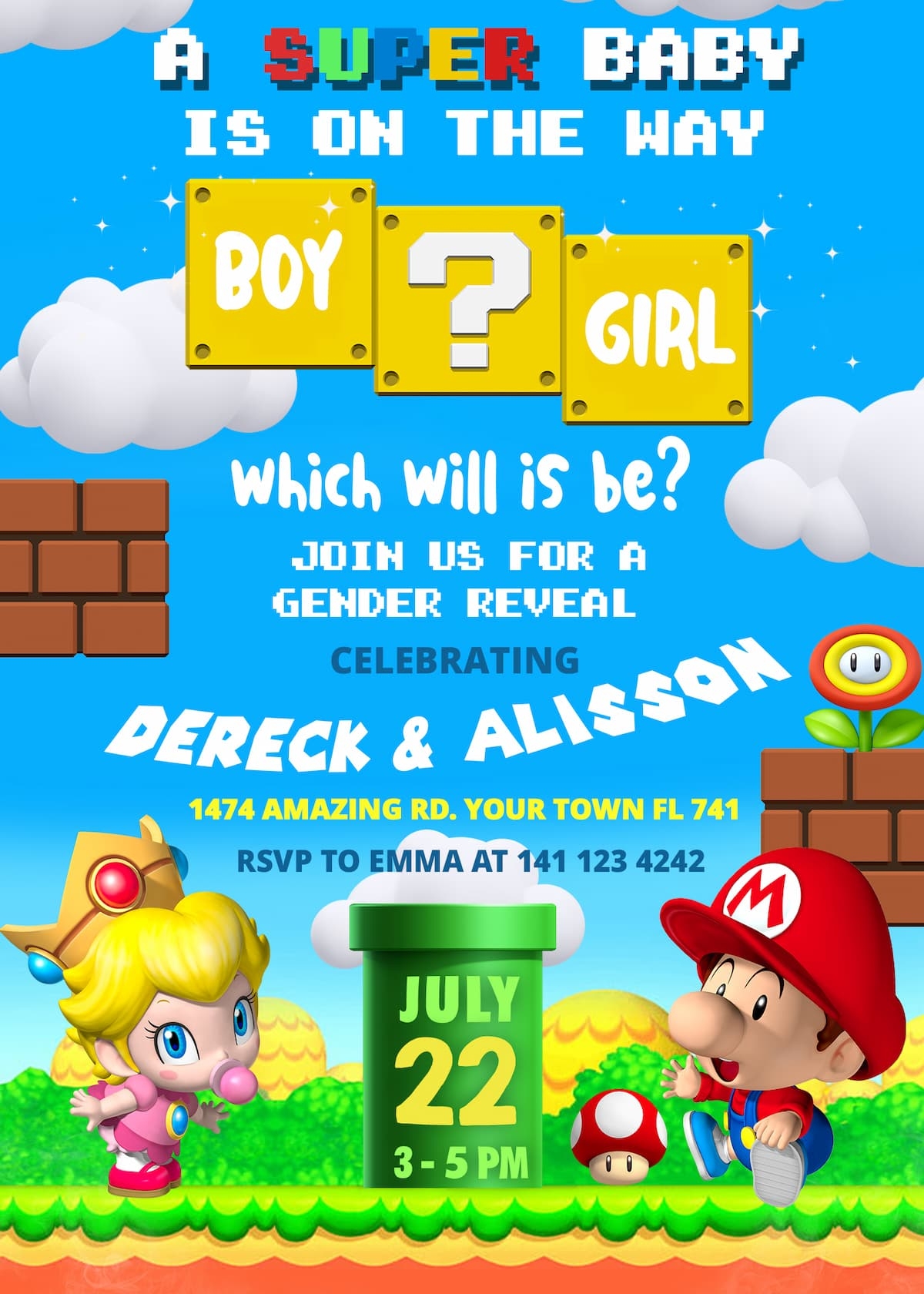 SUPER MARIO OR PRINCESS PEACH GENDER REVEAL INVITATION Oscarsitosroom Great Price 6 00