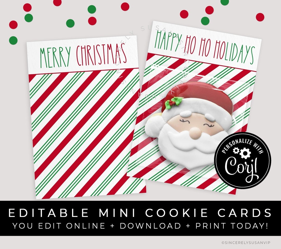 CUSTOMIZABLE Merry Christmas Cookie Card Printable Happy Ho Ho Holidays Santa Mini Cookie Card Editable Candy Cane Stripe Corjl 196 VIP Etsy