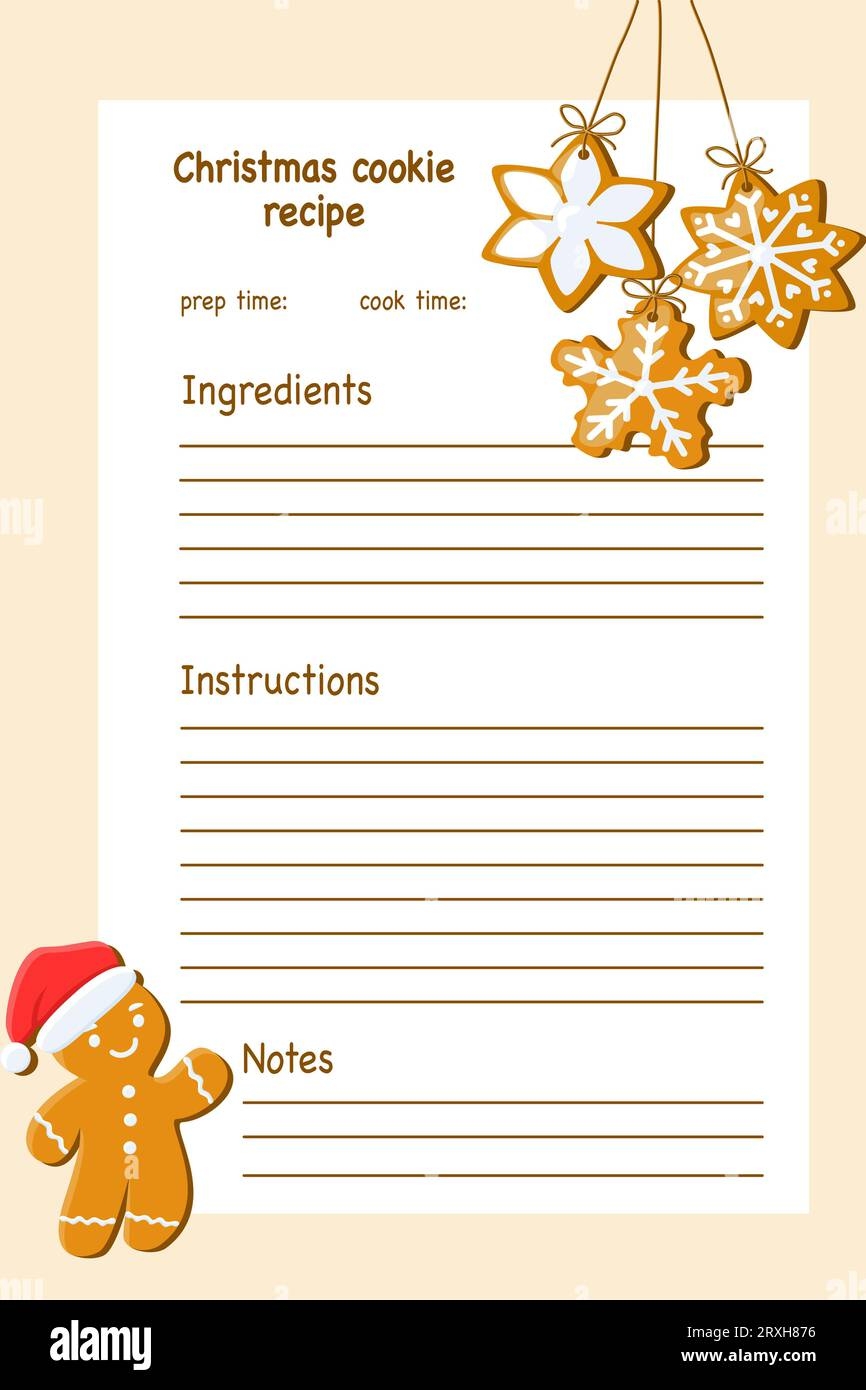 Empty Template Card For Christmas Cookie Recipe With Cute Gingerbread Man Character Vector Illustration Stock Vector Image Art Alamy