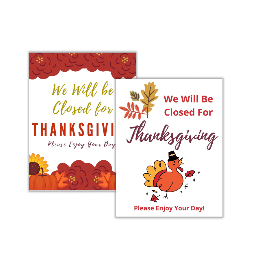 With options for both traditional and modern designs, you can choose the style that best suits your business. From elegant fall colors to playful Thanksgiving-themed graphics, there’s something for everyone to convey the message of closure in a festive and eye-catching way.
