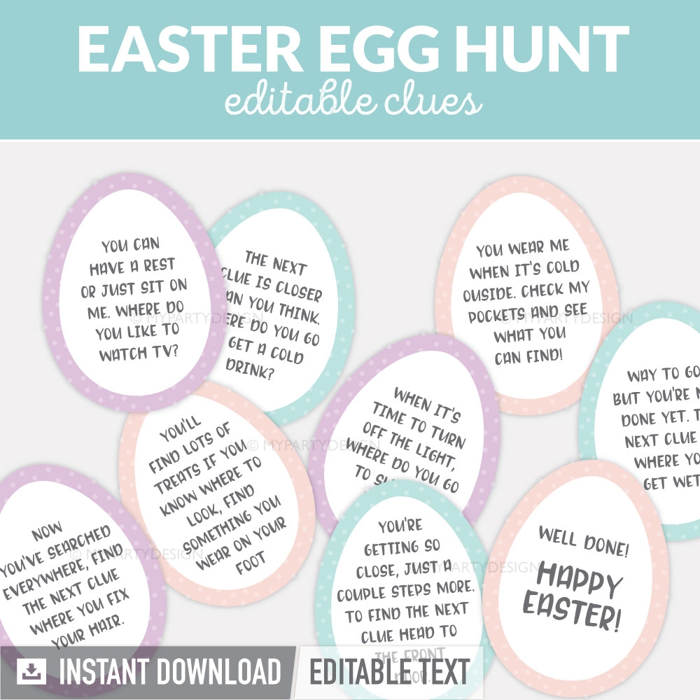 Easter Egg Hunt Clues Printable Editable PDF My Party Design