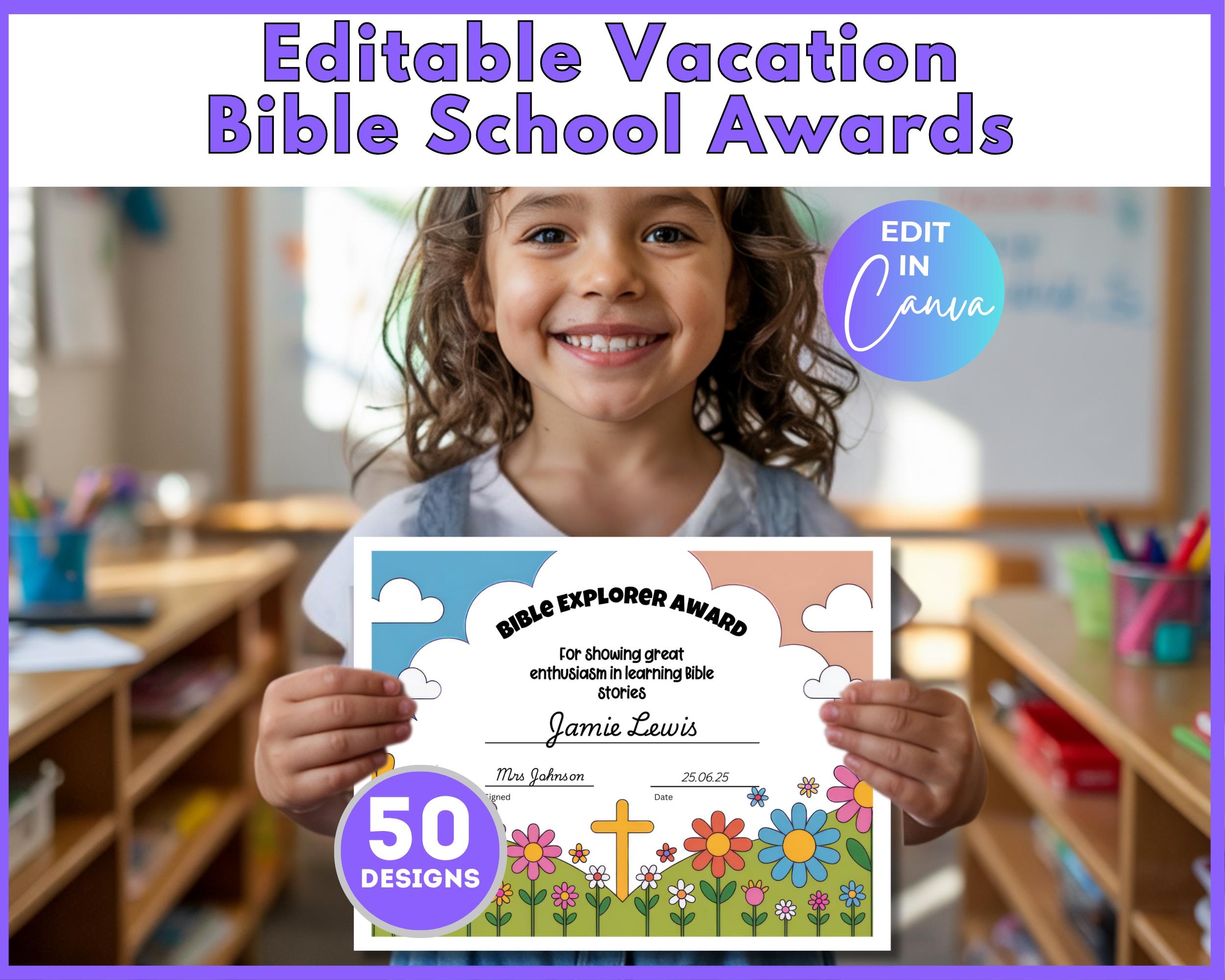 Editable VBS Awards Printable Awards Vacation Bible School Certificates Christian Kids Awards Sunday School Certificates Edit In Canva Etsy
