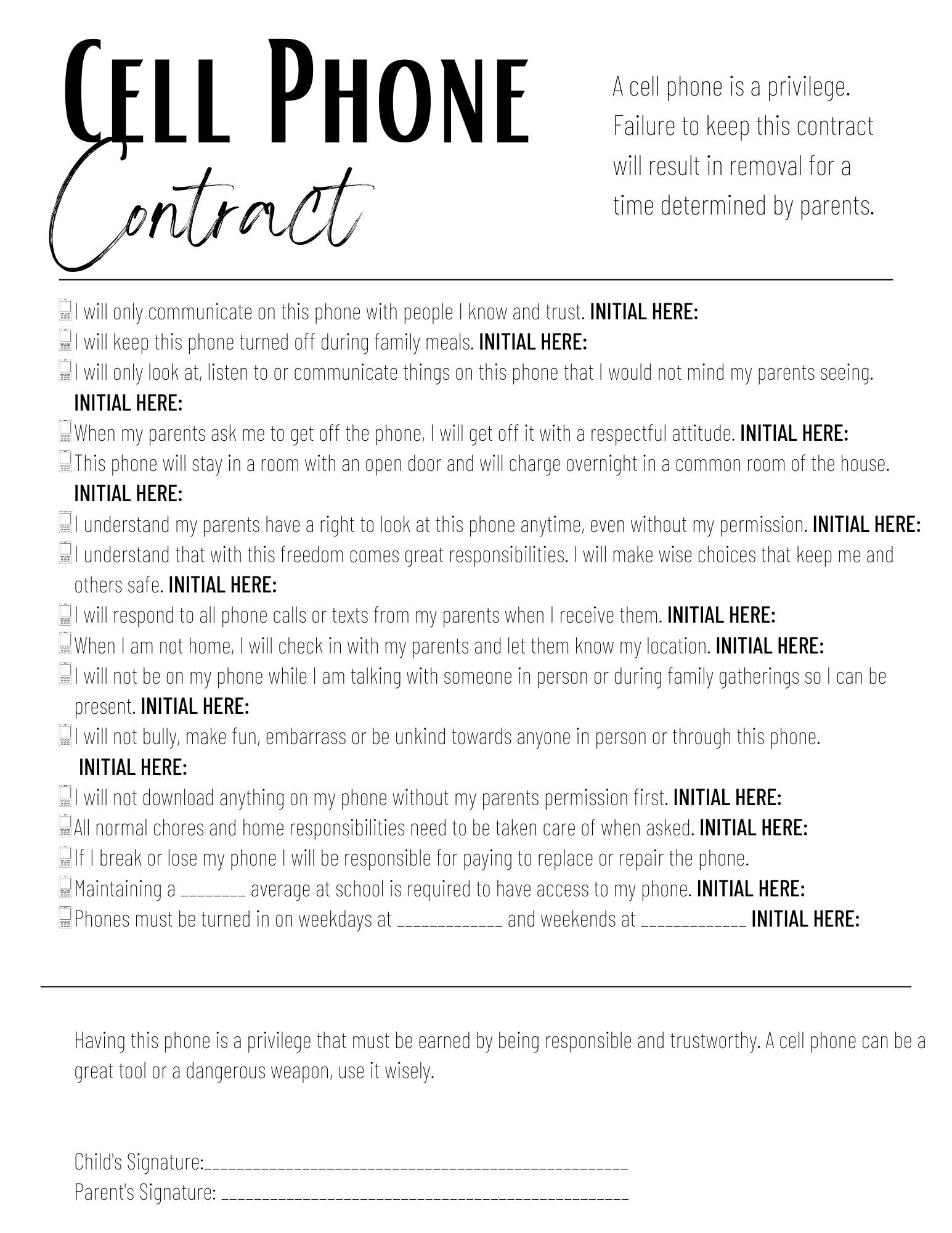 In conclusion, creating a printable cell phone contract for your tween is a proactive way to establish healthy boundaries around device usage. By setting clear expectations and guidelines, you can help your child develop responsible phone habits and foster a positive relationship with technology. Start the conversation today and create a contract that works for your family!