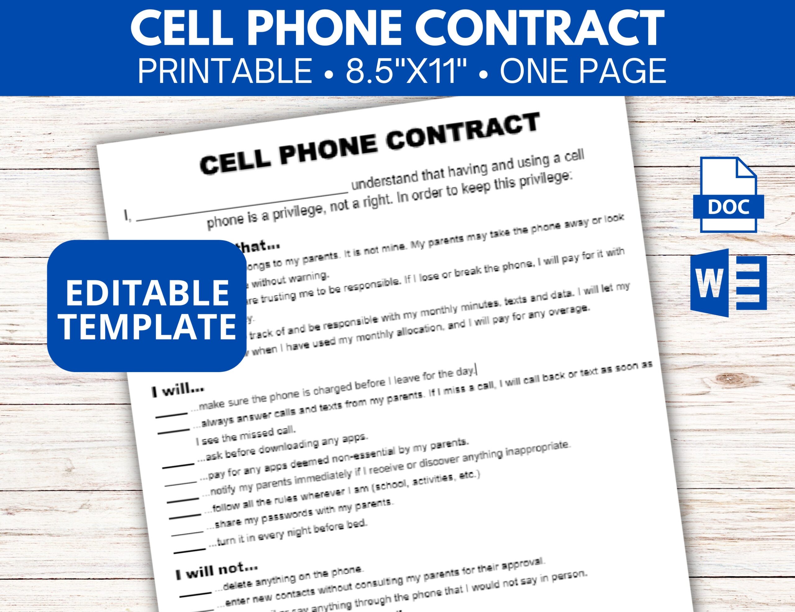 Printable Phone Contract Editable Cell Phone Contract PDF Digital Download Etsy
