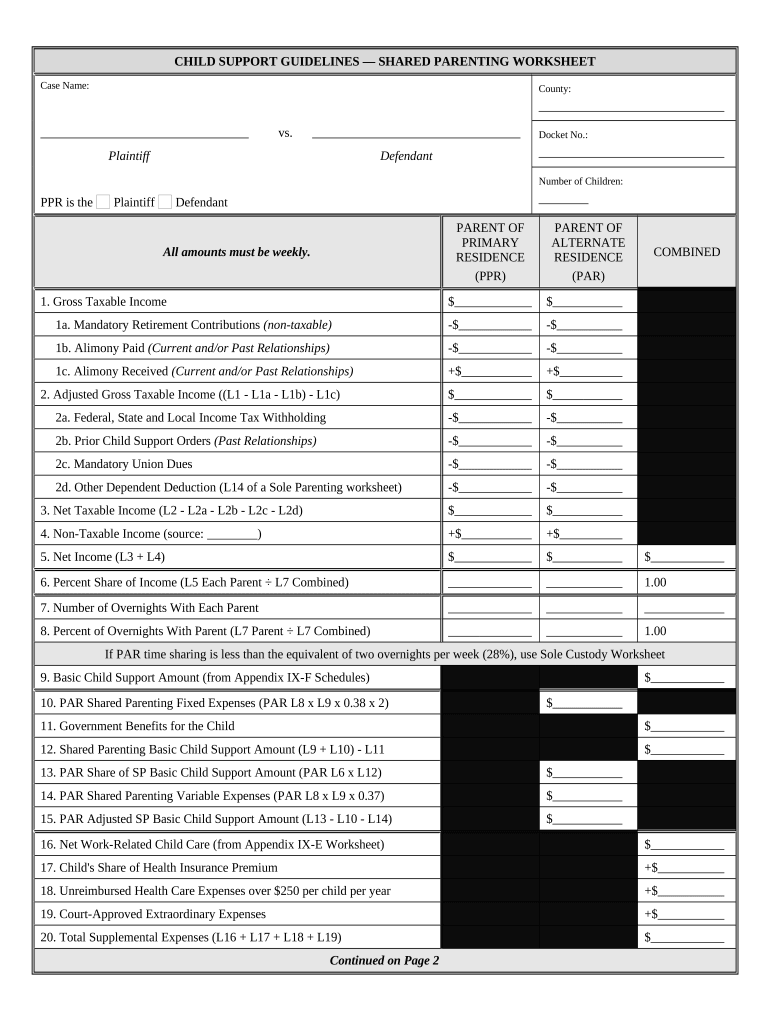 Child Support Worksheet Fill Online Printable Fillable Blank PdfFiller