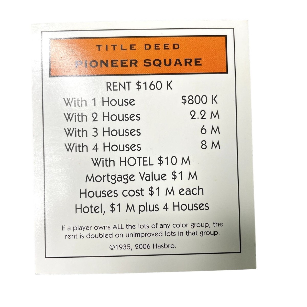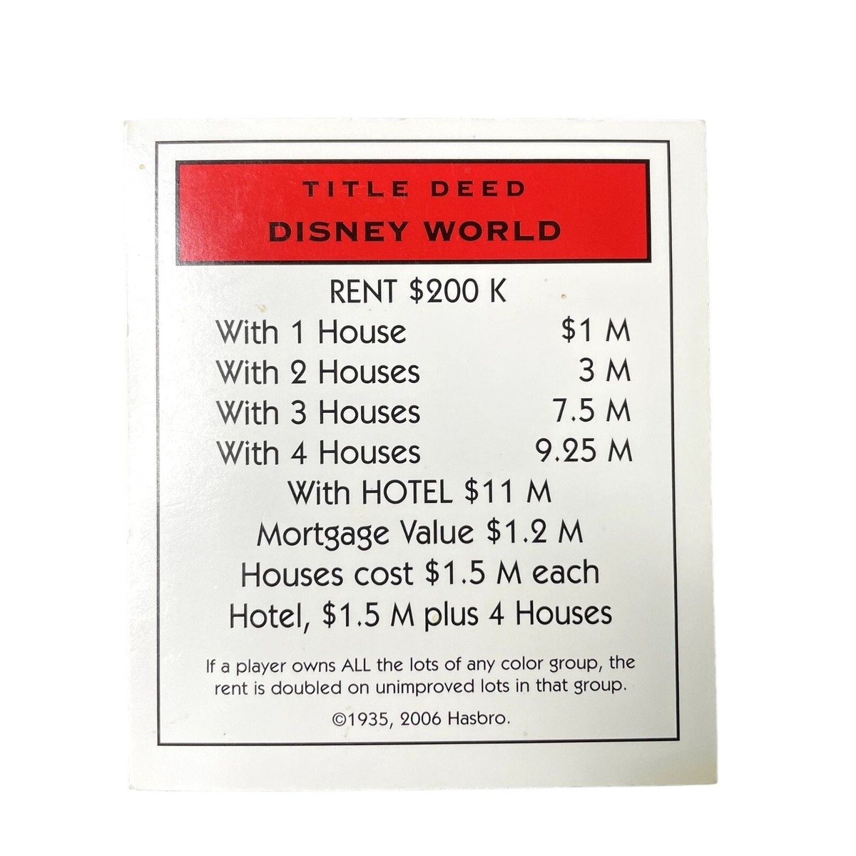Monopoly Electronic Banking Disney World Property U Title Deed Card Replacement EBay