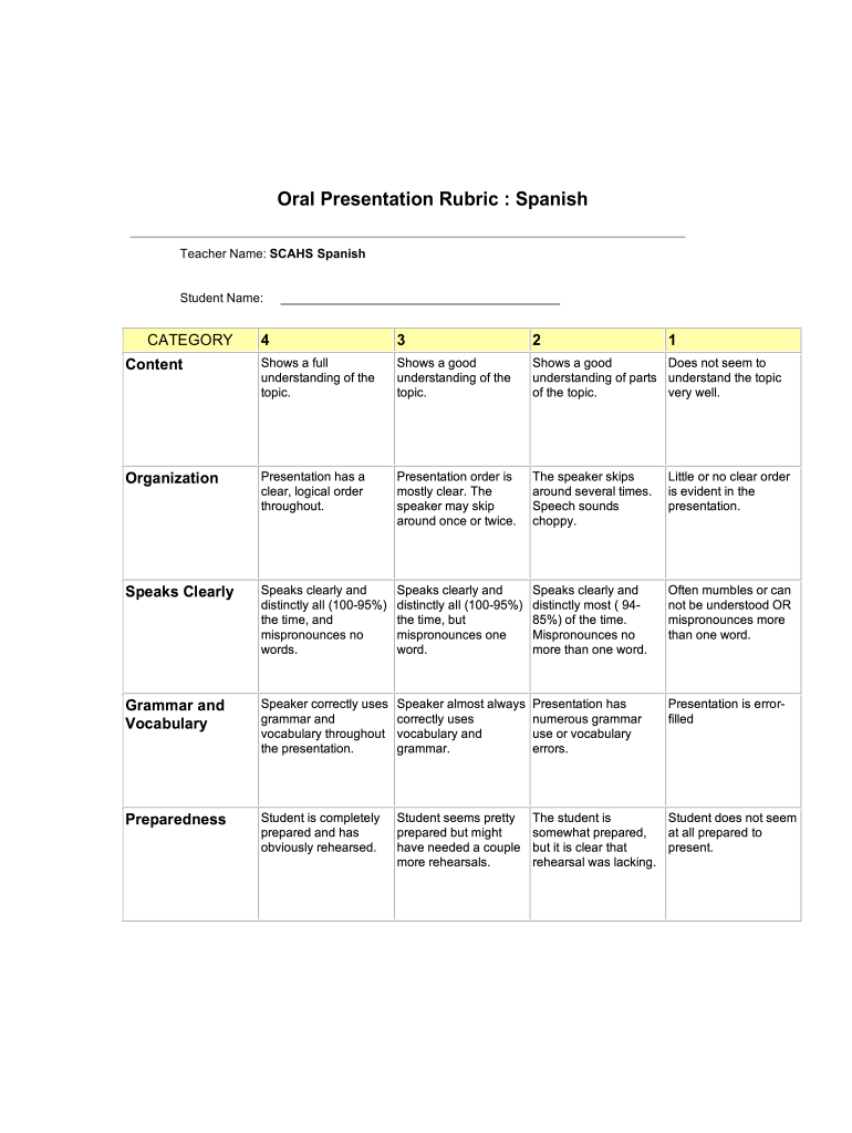 Spanish Presentation Rubric Fill Online Printable Fillable Blank PdfFiller