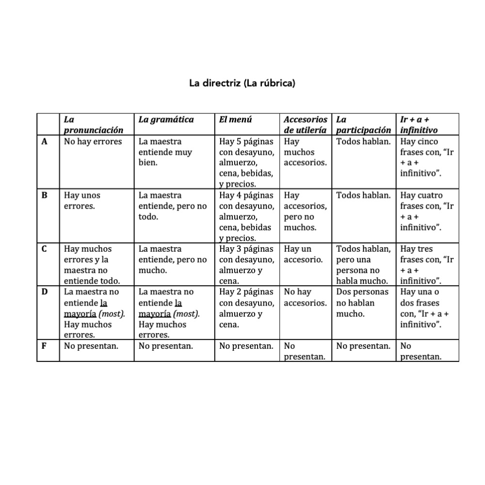 Creating Culinary Magic with Printable Edit Rubric Food Spanish