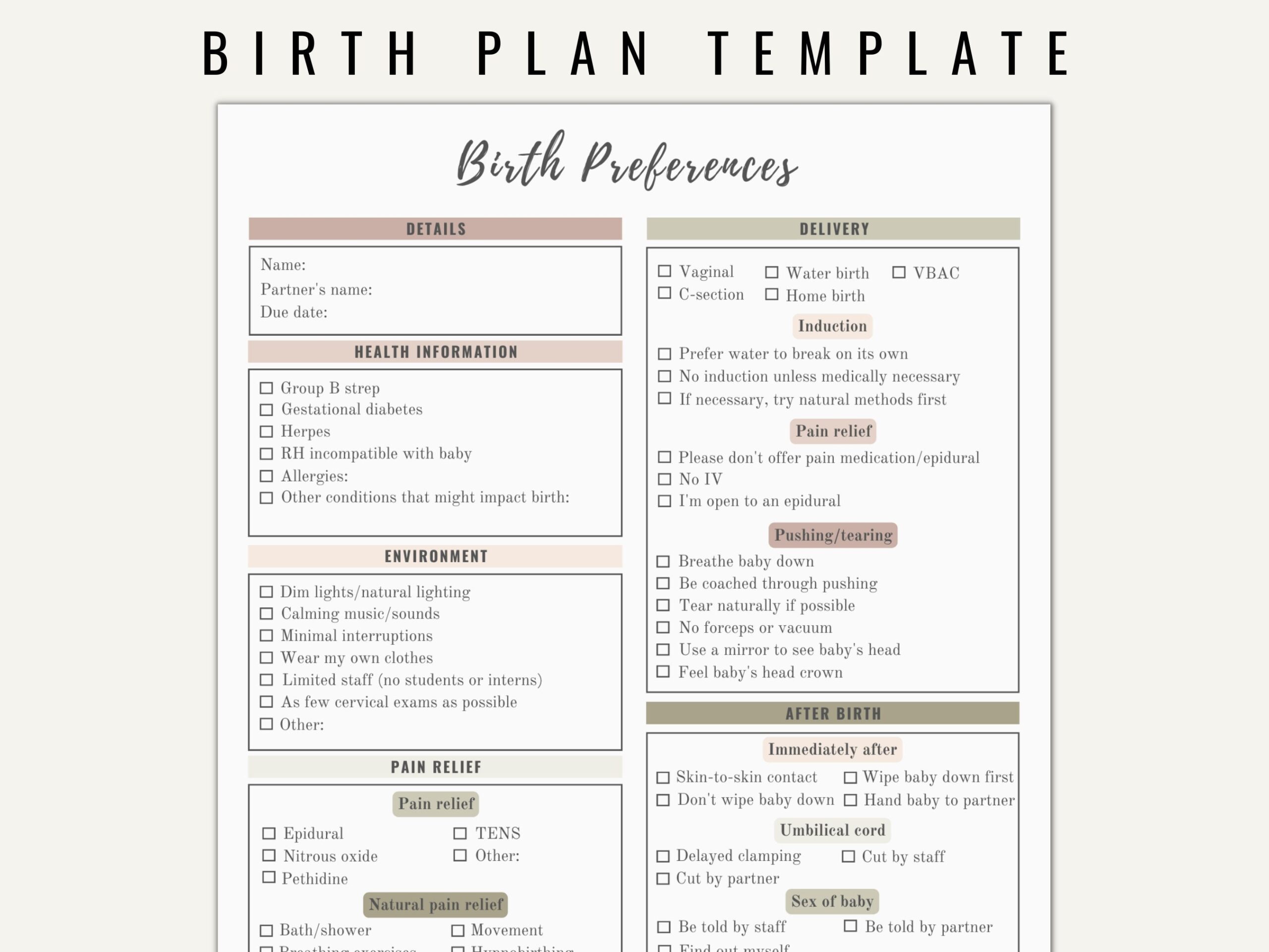 Birth Plan Template Printable Editable Neutral Colors Etsy