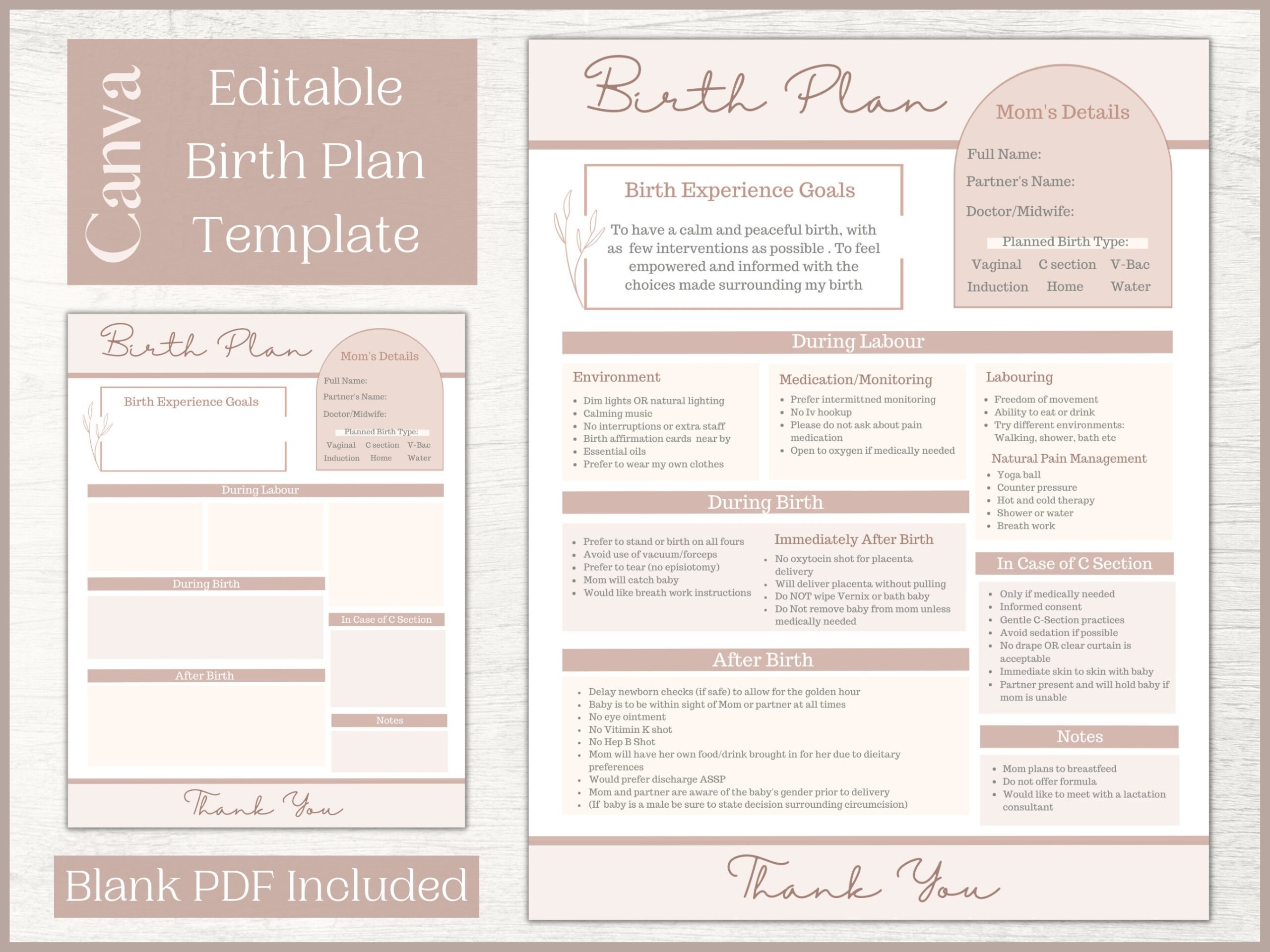 Editable Birth Plan Template Printable Birthing Plan Labour And Delivery Preferences Template Etsy